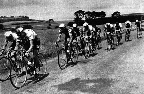 L'échappée du jour : Janssens devant avec Den Hartog, derrière on remarque Poulidor à côté de Simpson.