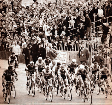 A Angers, un sprint mouvementé. Sels gagne mais Van Looy (à gauche) montre