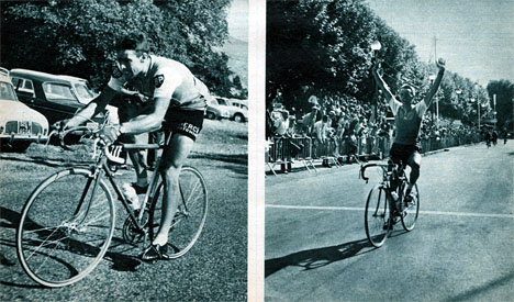 A gauche, Chappe échappé pendant 145 km et repris dans les faubourgs de Digne. A droite, Le "Bleuet" Samyn facile vainqueur (photo Miroir-Sprint n° 1101B du 12 juillet 1967).