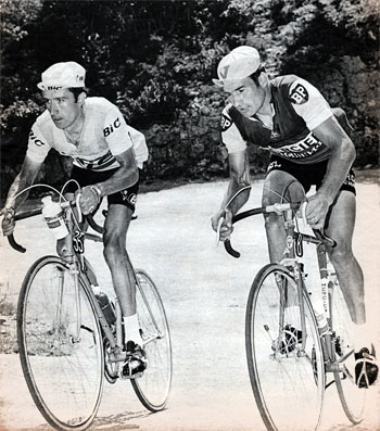 Julio Jimenez et Raymond Poulidor en tête avant le Chalet-Reynard (photo Le Miroir des Sports n° 1193 du 20 juillet 1967).