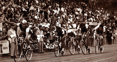 Sur la piste en cendrée de Fontainebleau, pour Paul Leméteyer, le sprinteur de l'équipe de France, c'est le jour de gloire ! (photo Miroir-Sprint n° 1103 du 24 juillet 1967).