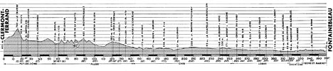 7h00 (Puy-de-Dôme) : Clermont-Ferrand (km 0) - Durtol (km 5.5) - Le Cratère (km 15.5) - Volvic (km 19.5) - Crouzol - Saint-Hippolyte (km 25) - Châtel-Guyon (km 26.5) - Prompsat (km 30.5) - Teilhède (km 34.5) - Combronde (km 37.5) - Jozerand (près de) (km 43.5) - (Allier) : Ebreuil (km 6.5) - Vicq (km 60.5) - Saint-Bonnet-de-Tison (km 64.5) - Bellenaves (km 66.5-sprint) - Côte de la Villette (km 80-GPM4) - Vernusse (km 81.5) - Blomard (km 84.5) - Montmarault (km 88.5) - Saint-Priest-en-Murat (km 93.5) - Les Anges - Villefranche-d'Allier (km 100.5) - Cosne-d'Allier (km 109.5) - Le Vilhain (km 119.5) - La Croix-Cornard (km 121) - Cerilly (km 127.5) - Carr. Richebout (km 139.5) - Les Breures (km 141) - Ainsy-le-Château (km 142.5) - (Cher) : Carr. Laugère (km 145.5) - Les Pérons (km 149.5) - Le Pondy (km 153.5) - Thaumiers (km 155.5) - Cogny (km 158.5) - Dun-sur-Auron (km 165.5) - Saint-Just (km 179) - Les Carrières - Bourges (km 197.5-ravitaillement) - Fussy (km 201) - Saint-Georges-sur-Moulon (km 206.5) - Saint-Martin-d'Auxigny (km 208.5) - Pic de Montaigu (km 213.5) - La Chapelle-d'Auguillon (km 225.5) - La Surprise (km 231) - Aubigny-sur-Nère (km 239.5) - Argent-sur-Sauldre (km 247.5) - La Matelotte (km 253.5) - (Loiret) : Cerdon-du-Loiret (km 258.5) - Bel-Air (km 365) - Sully-sur-Loire (km 273.5) - Saint-Père-sur-Loire (km 274.5) - Bonnée (km 277) - Bouzy-la-Forêt (km 284) - Les Quatre-Routes (km 285) - Châtenoy (km 291.5-sprint) - Bellegarde-du-Loiret (km 302) - Pavé de Juranville (km 310.5) - Auxy / Gare (km 13.5) - Chauffour (km 315.5) - Le Vau (km 317) - (Seine-et-Marne) : Beaumont-du-Gâtinais (km 319) - (Loiret) : Puiseaux (km 327) - Desmonts (près de) (km 330) - (Seine-et-Marne) : Fromont (km 333.5) - Amponville (km 338) - La Chapelle-la-Reine (km 343) - Ury (km 347) - Recloses (km 350) - Carr. de Recloses (km 352.5) - Route Ronde (km 354) - Croix de Souvray - Fontainebleau / Stade de la Faisanderie (km 359).