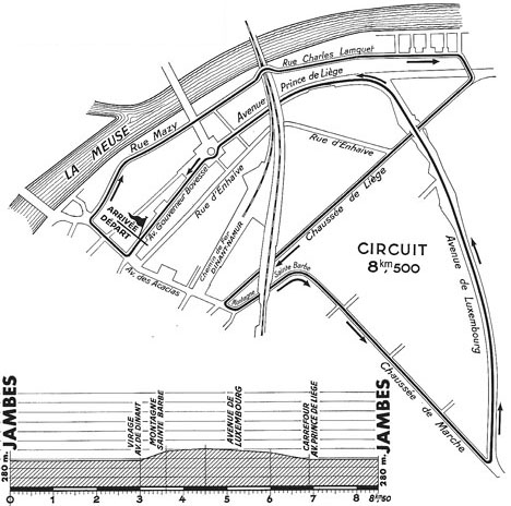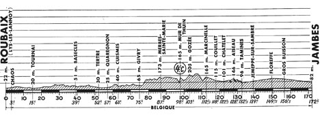 (Nord) : Roubaix - 11h15 Lys-les-Lannoy (km 0) - Toufflers (km 1) - Chaos / frontière (km 3) - (BELGIQUE) - Templeuve (km 6) - Tournai (km 15) - Carr. de Barry - Basècles (km 39) - Tertre (km 52) - Quaregnon (km 57) - Cuesmes (km 63) - Carr. du Cheval-Blanc (km 70) - Givry (km 75) - Rouveroy (km 78) - Peissant - Merbes-Sainte-Marie (km 87) - Lobbes (près de) - Thuin (km 97.5) - Mur-de-Thuin (km 98) - Carr. Gozée (km 103) - Bomerée - Marcinelle (km 112.5-ravitaillement) - Couillet / Quatre-Bras (km 118) - Châtelet (km 122.5) - Aiseau (km 128) - Carr. Renory (km 130) - Tamines (km 132.5) - Auvelais (km 136) - Jemeppe-sur-Sambre (km 139) - Moustier (km 141) - Franière (km 147) - Floreffe (km 149.5) - Malonne (km 153.5) - Gros-Buisson (km 156.5) - Namur-!a-Plante (km 160.5) - Pont-de-Jambes (km 163.5) - Montagne Sainte-Barbe (km 168.5) - Jambes / Av. du Gouverneur Bouvesse (km 172).