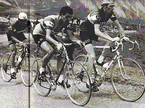 Pingeon, Gandarias et Poulidor dans le col d'Aubisque... la bataille ne fait que commencer (photo Miroir des Sports n° 1242 du 25 juillet 1968).