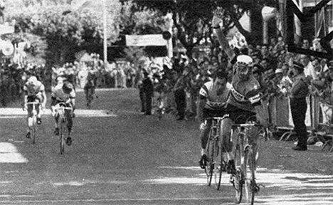 Herman Van Springel, décroché au sommet d'Envalira, revient dans la descente, attaque et s'impose à Seo de Urgel, en Espagne (photo Miroir des Sports n° 1239).