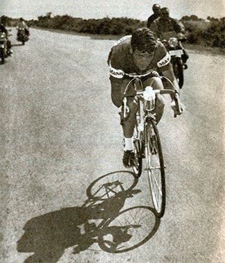 Roland Smaniotto, le seul de la journée qui parviendra à s'isoler à l'avant (photo Miroir-Sprint n° 1149A du 8 juillet 1968).