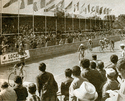 Vianen était entré détaché sur le vélodrome mais il restait 800 mètres à parcourir. Franco Bitossi va le remonter et s'imposer nettement (photo Miroir-Sprint n° 1149A du 8 juillet 1968).