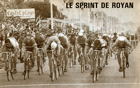 L'affaire a été chaude à Royan. De gauche à droite sur la 1ère ligne : Bitossi (3ème), Leman (4ème), Janssen (2ème), Van Rijckeghem le vainqueur, Vianen (5ème). (photo Miroir-Sprint n° 1149A du 8 juillet 1968).