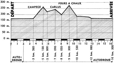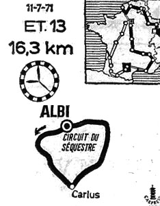 (Tarn) : Albi / circuit du Séquestre (km 0) - Sortie du circuit (km 2) - Carr. VO1-D27 (km 3.5) - D27 chemin Campejé Carlus (km 7) - D84 - Carr. D84C-D305 (km 11.8) - VO1 - entrée circuit Albi / tour contrôle (km 16.3).