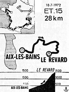 15h00 (Savoie) : Aix-les-Bains (km 0) - N491 Viviers-du-Lac (km 3.5) - D51 Méry (km 5.5) - D221 Mouxy (km 10) - N513 Châtenod (km 11.5) - Trévignin (km 14) - Véniper (km 16) - Le Revard / Carrefour embranchement des Hôtels (km 26).