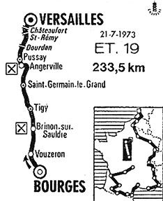 - Hormis quelques banderilles, rien à signaler jusqu'au point chaud de Tigy (km 93) que Mourioux passe premier ainsi que celui de St-Germain le Grand remporté cette fois-ci par Esclassan puis celui de Pussay (km 171.5) gagné par Hoban, juste après le ravitaillement d'Angerville.