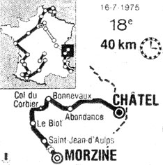 - km 17.1 (col du Corbier) : Van Impe en 30'20", à 45" Ritter, à 50" Zoetemelk, à 54" Thévenet, à 1'11" Merckx, à 1'14" Agostinho & Pollentier, à 1'30" Gimondi, à 1'37" Hézard, à 2'01" Janssens,..., à 2'36" Moser, à 2'41" Kuiper