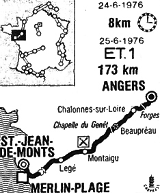 - Départs de 1 en 1 minute - Bracke à 14h43, Pollentier à 15h00, Zoetemelk à 15h04, Maertens à 15h12, Ocana à 15h15, Poulidor à 15h17, Thévent dernier départ à 15h19.