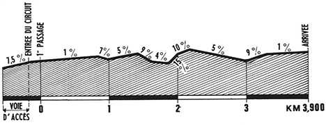 Terrain accidenté et sinueux avec une côte de 3ème catégorie.