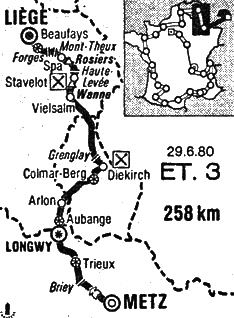 L'étape volante de Longwy (km 70) est gagnée par Hinault s'adjugeant ainsi 12" de bonification. Le "rush" du km 78 est remporté par Raas. Les 3 coureurs qui jouaient le sprint Le Guilloux, Van De Velde et René Martens continuent leur effort accompagnés par Jones, Bonnet, Linard, Seznec, Maas, Ludo Peeters. Ils sont vite rejoints.