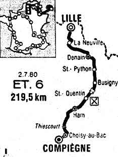 A Ham (km 159), Bertin récidive son sprint emmené par ses coéquipiers. Hinault est second. Aussitôt après, Bourreau tente une vaine attaque.