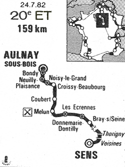 - A Donnemarie (km 49), Daniel Willems s'impose au 1er des 6 rushes de la journée ! Ces sprints risquent d'être animés car Van der Velde n'a que quelques secondes d'avance sur Winnen au C.G.. Il bat McKenzie et... Van der Velde.