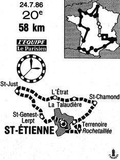 - km 48.5 : Hinault, à 30" LeMond, à 2'13" Bernard, à 2'18" Gorospe, à 2'39" Vandenbroucke, à 2'40" Stevenhaagen, à 2'44" Lejarreta, à 2'49" Roche, à 2'52" Haghedooren & Zimmermann etc.