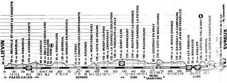 9h45 (Pas-de-Calais) : Liévin (km 0) - D58 Angres (km 1) - Souchez (km 3) - D937 Neuville-Saint-Vaast (km 7) - La Targette - D56 Marœuil (km 12.5) - D939 Agnes-lez-Duisans (km 16.5) - Habarcq (km 20) - Noyellettes-en-l'Eau (km 21.5) - Avesnes-le-Comte (km 26.5-sprint) - D75 Grand-Rullecourt (km 31.5) - (Somme) : Lucheux (km 39.5) - Grouches Luchuel (km 42) - Bout-de-près-les-Doullens (km 43.5) - Milly-lez-Doullens (km 44.5) - Doullens (km 46.5) - Bretel-lez-Gezaincourt (km 48.5) - D126 Hem (km 50) - D925 Hardinval (km 52) - Fienvillers (km 57) - D126 Berneuil (km 62.5) - Domart-en-Ponthieux (km 67) - L'Etoile (km 77) - Condé-Folie (km 79) - D3 Longpré-Les-Corps-Saints (km 81-ravitaillement) - D216 Bettencourt-Rivière (km 83) - Airaines (km 88) - D38 Mortagne-Fayel (km 94.5) - Molliens-Dreuil (km 99) - Côte de Vidame (km 100.5-GPM4) - Bougainville (km 102) - Poix-de-Picardie (km 114) - Thieulloy-la-Ville (km 120) - Saint-Clair (km 127-sprint) - (Oise) : D919 Romescamps (km 129.5) - Bernapré (km 131.5) - Abancourt (km 133) - D316 Belleville (km 135) - Campeaux (km 143) - Saint-Samson-la-Poterie (km 146) - Villers-Vermont (km 149) - Bazancourt (km 151.5) - (Seine-Maritime) : Gournay-en-Bray (km 161.5-ravitaillement) - Côte de Bosc-Hyons (km 166.5-GPM4) - (Eure) : D316 Bezu-la-Forêt (km 173) - La Neuve-Grange (km 181.5) - Saussay-la-Champagne (km 187.5) - Saint-Jean-de-Frenelles (km 191) - Les Andelys (km 200-sprint) - N313 Vezillon (km 202) - Bouafles (km 204) - D316 Courcelles-sur-Seine (km 207.5) - Aubevoye (km 209) - Gaillon (km 210.5-sprint) - Côte du Val d'Any (km 215.5) - Autheuil-Anthouillet (km 220.5) - Côte de Chanteloup (km 224-GPM4) - N154 Gravigny (km 232-sprint) - Évreux / côte de la rue Churchill (km 236.5-GPM3) - Évreux / Bd. des Cités-Unies (km 243).