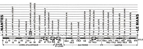 12h10 (Loire-Atlantique) : Nantes (km 0) - D178 Carquefou (km 5.5) - Saint-Mars-du-Désert (km 16) - Ligne (km 22) - Le Boulay (km 26) - D9 Teille (près de) (km 32) - Pannece (km 37) - Saint-Mars-la-Jallle (km 44) - D29 Saint-Sulpice-des-Landes (km 50) - Petit Auvergne (km 58) - D32 Erbray (km 63.5) - D14 La Touche d'Erbray (km 67-sprint) - D163 Châteaubriant (km 72.5) - Soudan (km 78.5) - (Maine-et-Loire) : Pouancé (km 88) - (Mayenne) : Renazé (km 99) - Roche Poulain (lieu-dit) (km 100.5-sprint) - Saint-Martin-du-Limet (km 102) - Craon (km 108.5) - Laigné (km 119.5-ravitaillement) - Bazouges (km 127) - Château-Gontier (km 129) - D28 Aze (km 130.5) - Gennes-sur-Glaize (km 137) - Grez-en-Bouere (km 143.5-sprint) - Les Agets (km 151.5) - Bouessay (km 154) - (Sarthe) : D79 Auvers-le-Hamon (km 158.5) - D4 Poille-sur-Vègre (km 166.5) - Saint-Pierre-des-Bois (km 178) - Vallon-sur-Gée (km 184.5) - Souligne-Flace (km 190.5) - Côte de Souligne (km 192.5-GPM4) - Saint-Georges-du-Bois (km 197.5) - D309 entrée Le Mans (km 202) - Le Mans / pl. de la République (km 211.5) - Le Mans / Quai Louis Blanc (km 213.5).