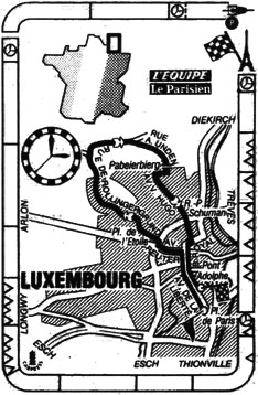 14h00 (LUXEMBOURG) - Luxembourg (km 0) - Avenue de la Liberté - Pont Adolphe (km 0.5) - Boulevard Royal - Avenue R.-Reuter (km 1) - Place de l'Etoile (km 1.5) - Place Maurice-Pescatore (km 2.7) - Rue Albert-Unden -