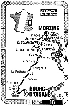 - Bourguignon parvient à rejoindre Claveyrolat à 5 km du but. Le groupe "maillot jaune" est à 1'30". Claveyrolat règle au sprint Bourguignon et se rapproche sérieusement de Chiappucci pour le maillot à pois.
