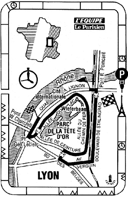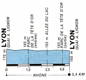 13h30 Lyon/Parc de la Tête d'Or/Quai A. Lignon (km 0) - Villeurbanne-Bd de Stalingrad (km 0.1) - Lyon - Av. Verguin (km 1.3) - Bd des Belges (km 1.8) - entrée Parc de la Tête d'Or (km 1.9) - Allée de Ceinture (km 2) - Allée du Chemin de Fer (km 2.7) - Allée du Lac (km 3.5) - sortie Parc de la Tête d'Or (km 4.8) - Place du Général-Leclerc (km 4.9) - Bd des Belges (km 5) - Lyon Quai A.Lignon (km 5.4).
