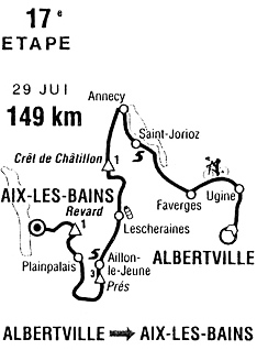 - 17h30 : Au ravitaillement de Lescheraines (km 80.5) les Banesto renoncent à leur tour, imités par Riso Scotti.