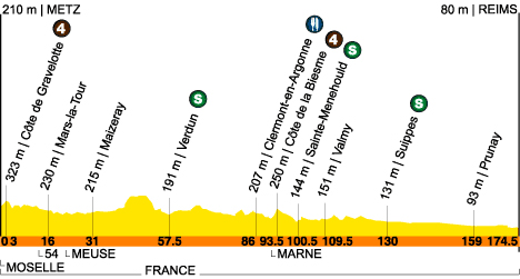 109.5) - Somme-Bionne (km 114.5) - Somme-Tourbe (km 119) - Somme-Suippe (km 126) - Suippes (km 130-sprint) -