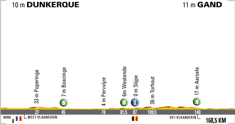 Proven (km 23.5) - Poperinge (km 27) - Vlamertinge (km 35.5) - Ypres (km 43.5) - Boezinge (km 45-sprint) -