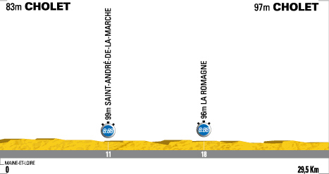![]() mardi 8 juillet 2008 ![]() 11h02 à 16h56 (Maine-et-Loire) : Cholet (km 0) - D13 Carr. D13-D158 (km 3) - D158 Saint-André-de-la-Marche (km 11-chrono) - Carr. D91 (km 12) - D91 Carr. (km 16.5) - Carr. D753 (km 17.5 - D753 La Romagne (km 18-chrono) - Les Vignes (km 19.5) - La Seguinière (km 23) - La Promenade (km 24) - La Bréchoire (km 24.5) - Cholet / entrée (km 26) - Cholet / Av. Anatole Marceau (km 29.5). ![]() ![]() ![]() 178 partants Météo : temps variable, vent assez fort. La 1ère partie est la plus difficile avec vent défavorable. Les derniers kilomètres, très roulants, sont effectués vent dans le dos et provoquent peu d'écart. Schumacher est parti à 16h10, Feillu à 16h56. Schumacher est en tête du début à la fin. Evans, parti lentement, perd du temps régulièrement mais remonte aux premières places du chrono et il est le meilleur des favoris. Temps intermédiaires : - km 11 : Schumacher en 13'54", à 11" Kirchen, à 13" Millar, à 14" Hincapie, à 15" Voigt, à 17" Cancellara, à 19" Vandevelde & Menchov, à 20" Nibali, à 22" Evans, etc..., à 44" Sastre, à 45" A. Schleck, à 46" Cunego, à 48" Valverde, à 50" F. Schleck, à 1'22" Ricco, à 1'48" Feillu, etc. - km 18 : Schumacher en 24'42", à 11" Kirchen, à 15" Millar, à 23" Voigt, à 24" Evans, à 29" Menchov, à 30" Vandevelde & Cancellara, à 34" Hincapie, à 43" Nibali, etc..., à 1'02" Valverde, à 1'09" A. Schleck , à 1'11" Cunego & Sastre, à 1'40" F. Schleck, à 2'40" Ricco, à 3'12" Feillu, etc. ![]() Étape : ![]() 2. Kim Kirchen (Lux) à 18" 3. David Millar (Gbr) 4. Cadel Evans (Aus) à 27" 5. Fabian Cancellara (Sui) à 33" 6. Denis Menchov (Rus) à 34" 7. Jens Voigt (All) à 35" 8. Christian Vandevelde (Usa) à 37" 9. George Hincapie (Usa) à 41" 10. Vincenzo Nibali (Ita) à 47" 11. Thomas Lövkvist (Sue) 12. José Ivan Gutierrez (Esp) à 50" 13. Sylvain Chavanel (Fra) à 1'08" 14. Danny Pate (Usa) à 1'10" 15. Stijn Devolder (Bel) à 1'18" 16. Maxime Monfort (Bel) à 1'24" 17. Damiano Cunego (Ita) à 1'26" 18. Oscar Pereiro (Esp) à 1'28" 19. Sebastian Lang (All) à 1'29" 20. Andy Schleck (Lux) 21. Samuel Sanchez (Esp) à 1'31" 22. Stef Clement (Hol) à 1'34" 23. Alejandro Valverde (Esp) 24. Niki Terpstra (Hol) à 1'38" 25. Marzio Bruseghin (Ita) à 1'41" 26. Christophe Riblon (Fra) à 1'42" 27. Mikel Astarloza (Esp) 28. Carlos Sastre (Esp) à 1'43" 29. Alessandro Ballan (Ita) à 1'45" 30. Rubens Bertogliati (Sui) à 1'46" 32. Carlos Barredo (Esp) à 1'48" 33. Christopher Froome (Ken) à 1'49" 34. Roman Kreuziger (Tch) à 1'51" 35. Christian Knees (All) à 1'53" 36. Magnus Bäckstedt (Sue) à 1'54" 37. Filippo Pozzato (Ita) 38. Robert Hunter (Afs) à 1'55" 39. Christophe Moreau (Fra) 40. Jesus Del Nero (Esp) à 1'58" 41. Sébastien Rosseler (Bel) à 2'04" 42. Joost Posthuma (Hol) à 2'06" 43. Pierrick Fedrigo (Fra) à 2'08" 44. David Moncoutié (Fra) à 2'12" 45. Tadej Valjavec (Slo) 46. Fränk Schleck (Lux) à 2'14" 47. Vladimir Efimkin (Rus) 48. Nicolas Vogondy (Fra) à 2'17" 49. Yoann Le Boulanger (Fra) à 2'18" 50. Cyril Dessel (Fra) à 2'20" 51. Juan Antonio Flecha (Esp) à 2'26" 52. William Bonnet (Fra) à 2'30" 53. Luis Leon Sanchez (Esp) 54. Ronny Scholz (All) à 2'31" 55. Oscar Freire (Esp) à 2'33" 56. Ryder Hesjedal (Can) à 2'34" 57. Felix Rafael Cardenas (Col) à 2'36" 58. Matteo Carrara (Ita) 59. Koos Moerenhout (Hol) 60. Jérôme Pineau (Fra) à 2'38" 61. Dmitriy Fofonov (Kaz) 62. Aliaksandr Kuschynski (Blr) à 2'43" 63. Leif Hoste (Bel) à 2'46" 64. Sandy Casar (Fra) 65. Jürgen Van de Walle (Bel) à 2'49" 66. Simon Gerrans (Aus) à 2'50" 67. Nicolas Portal (Fra) 68. Thomas Voeckler (Fra) à 2'53" 69. Aurélien Passeron (Fra) à 2'54" 70. Fabian Wegmann (All) à 2'55" 71. Stéphane Goubert (Fra) à 2'56" 72. Gorka Verdugo (Esp) à 2'57" 73. Amaël Moinard (Fra) 74. Manuel Beltran (Esp) 75. Leonardo Duque (Col) à 2'58" 76. Volodymir Gustov (Ukr) 77. Marco Velo (Ita) à 3'01" 78. Kanstantsin Siutsou (Blr) à 3'03" 79. Robert Förster (All) 80. Peter Velits (Svq) à 3'04" 81. Martin Elmiger (Sui) à 3'05" 82. Moises Dueñas (Esp) 83. Markus Fothen (All) à 3'06" 84. Yury Trofimov (Rus) à 3'07" 85. Johan Van Summeren (Bel) 86. Murilo Antonio Fischer (Bre) à 3'08" 87. Manuel Quinziato (Ita) à 3'10" 88. Florent Brard (Fra) 89. Benoît Vaugrenard (Fra) 90. Björn Schröder (All) à 3'11" 91. Philippe Gilbert (Bel) à 3'12" 92. Laurens Ten Dam (Hol) à 3'13" 93. Nicki Sørensen (Dan) 94. Martin Müller (All) à 3'14" 95. Mauro Facci (Ita) à 3'15" 96. Brett Lancaster (Aus) 97. Matthieu Sprick (Fra) 98. Heinrich Haussler (All) à 3'17" 99. Erik Zabel (All) à 3'19" 100. Haimar Zubeldia (Esp) à 3'22" 101. Hubert Dupont (Fra) 102. Rémi Pauriol (Fra) 103. Yaroslav Popovych (Ukr) à 3'23" 104. Laurent Lefèvre (Fra) à 3'24" 105. Gert Steegmans (Bel) à 3'26" 106. Adam Hansen (Aus) à 3'28" 106. José Luis Arrieta (Esp) 108. Stéphane Augé (Fra) à 3'30" 109. Marco Marzano (Ita) à 3'31" 110. Mario Aerts (Bel) à 3'32" 111. Trent Lowe (Aus) à 3'34" 112. Julian Dean (Nzl) 113. Egoi Martinez (Esp) à 3'35" 114. Juan José Oroz (Esp) à 3'36" 116. Thor Hushovd (Nor) 117. Paolo Tiralongo (Ita) à 3'38" 118. Gianpaolo Cheula (Ita) à 3'39" 119. Bram Tankink (Hol) à 3'42" 120. Sylwester Szmyd (Pol) 121. Eduardo Gonzalo (Esp) à 3'43" 122. Matteo Tosatto (Ita) 123. Juan José Cobo (Esp) à 3'45" 124. Iñaki Isasi (Esp) 125. Steven De Jongh (Hol) à 3'46" 126. Sebastiaan Langeveld (Hol) à 3'48" 127. Sven Krauss (All) 128. David Le Lay (Fra) à 3'49" 129. Jérémy Roy (Fra) à 3'50" 130. Arnaud Gérard (Fra) 131. Christophe Le Mével (Fra) à 3'51" 132. Nicolas Jalabert (Fra) 133. Lilian Jégou (Fra) à 3'52" 134. David Arroyo (Esp) à 3'54" 135. Amets Txurruka (Esp) 136. Ralf Grabsch (All) 137. Rémy Di Gregorio (Fra) 138. Martijn Maaskant (Hol) 139. Stuart O'Grady (Aus) à 3'57" 140. Xavier Florencio (Esp) à 4'00" 141. William Frischkorn (Usa) à 4'01" 142. Dario-David Cioni (Ita)