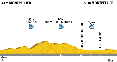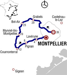 ![]() mardi 7 juillet 2009 ![]() 14h30 à 16h43 (Hérault) : Montpellier / Place de la Comédie (km 0) - Grabels (D127-D102) D127 (km 10) - Bel-Air D.102 (km 15.5) - Murviel-lès-Montpellier (km 19.5) - Cournonterral (D102-D5) (km 26.5) - D5 Pignan (près de) (km 30.5) - Laverune (près de) (km 32) - Saint-Jean-de-Védas (près de) (km 36.5) - Montpellier / Entrée (km 37.5) - Montpellier / Av. de Vanières (km 39). ![]() ![]() ![]() Météo : 32°, léger vent d'Ouest. 179 partants Temps intermédiaires : Grabels, km 10 : CAISSE d'ÉPARGNE en 12'35", ASTANA à 7", GARMIN à 7", KATUSHA à 9", LIQUIGAS à 12", SAXO BANK à 19" etc. Murviel, km 19.5 : ASTANA en 25'27", GARMIN à 23", LIQUIGAS à 34", SAXO BANK à 38", CAISSE D'ÉPARGNE à 42", COLUMBIA à 50" etc. Pignan, km 30.5 : ASTANA en 37'32", GARMIN à 17", SAXO BANK à 41", LIQUIGAS à 48", COLUMBIA à 57", KATUSHA à 1'09", CAISSE d'ÉPARGNE à 1'11" etc. ![]() Étape : ![]() 1. ASTANA en 46'29" (moy : 50.340 km/h) 2. GARMIN-SLIPSTREAM à 18" 3. TEAM SAXO BANK à 40" 4. LIQUIGAS à 58" 5. TEAM COLUMBIA-HTC à 59" 6. TEAM KATUSHA à 1'23" 7. CAISSE D'EPARGNE à 1'29" 8. CERVELO TEST TEAM à 1'38" 9. AG2R-LA MONDIALE à 1'49" 10. EUSKALTEL-EUSKADI à 2'10" 11. RABOBANK à 2'21" 12. QUICK STEP à 2'26" 13. SILENCE-LOTTO à 2'36" 14. FRANÇAISE DES JEUX à 2'46" 15. TEAM MILRAM à 2'49" 16. COFIDIS, LE CREDIT EN LIGNE à 2'59" 17. LAMPRE-N.G.C. à 3'25" 18. AGRITUBEL à 4'18" 19. BBOX BOUYGUES TELECOM à 4'42" 20. SKIL-SHIMANO à 5'23" Abandon : Piet Rooijakkers (Hol) (fractures) Classement général : 1. Fabian Cancellara (Sui) en 10h38'07" 3. Alberto Contador (Esp) à 19" 4. Andreas Klöden (All) à 23" 5. Levi Leipheimer (Usa) à 31" 6. Bradley Wiggins (Gbr) à 38" 7. Haimar Zubeldia (Esp) à 51" 8. Tony Martin (All) à 52" 9. David Zabriskie (Usa) à 1'06" 10. David Millar (Gbr) à 1'07" 11. Sergio Miguel Paulinho (Por) à 1'16" 12. Christian Vandevelde (Usa) m.t. 13. Gustav-Erik Larsson (Sue) à 1'22" 14. Maxime Monfort (Bel) à 1'29" 15. Roman Kreuziger (Tch) à 1'31" 16. Michael Rogers (Aus) à 1'32" 17. George Hincapie (Usa) à 1'36" 18. Yaroslav Popovych (Ukr) m.t. 19. Vincenzo Nibali (Ita) m.t. 20. Andy Schleck (Lux) à 1'41" 21. Ryder Hesjedal (Can) à 1'46" 22. Jens Voigt (All) à 2'03" 23. Kurt-Asle Arvesen (Nor) à 2'05" 24. Kim Kirchen (Lux) à 2'16" 25. Fränk Schleck (Lux) à 2'17" 26. Brian Vandborg (Dan) à 2'25" 27. Vladimir Karpets (Rus) à 2'31" 28. 29. Carlos Sastre (Esp) à 2'44" 30. Nicki Sørensen (Dan) m.t. 31. Fabio Sabatini (Ita) à 2'50" 32. Bert Grabsch (All) à 2'51" 33. 34. Luis Pasamontes (Esp) à 2'56" 35. Cadel Evans (Aus) à 2'59" 36. Serguei Ivanov (Rus) m.t. 37. Thor Hushovd (Nor) m.t. 38. Stuart O'Grady (Aus) à 3'00" 39. Mikhail Ignatiev (Rus) à 3'02" 40. Oscar Pereiro (Esp) à 3'03" 41. Hayden Roulston (Nzl) à 3'05" 42. Rui Alberto Costa (Por) à 3'06" 43. Heinrich Haussler (All) à 3'07" 44. Volodymir Gustov (Ukr) à 3'09" 45. Linus Gerdemann (All) à 3'11" 46. Rigoberto Uran (Col) à 3'12" 47. Rinaldo Nocentini (Ita) à 3'13" 48. Nicolas Roche (Irl) à 3'16" 49. Jérôme Pineau (Fra) à 3'17" 50. José Ivan Gutierrez (Esp) m.t. 51. José Joaquin Rojas (Esp) m.t. 52. Filippo Pozzato (Ita) à 3'18" 53. Luis Leon Sanchez (Esp) m.t. 54. Lloyd Mondory (Fra) à 3'21" 55. Sylvain Chavanel (Fra) à 3'23" 56. Juan José Oroz (Esp) à 3'24" 57. Gorka Verdugo (Esp) à 3'25" 58. Brett Lancaster (Aus) à 3'28" 59. Frederik Willems (Bel) à 3'32" 60. Mark Cavendish (Gbr) à 3'33" 61. Stéphane Goubert (Fra) à 3'34" 62. Robert Gesink (Hol) à 3'36" 63. Chris-Anker Sørensen (Dan) m.t. 64. Cyril Dessel (Fra) à 3'38" 65. Christophe Riblon (Fra) à 3'42" 66. Vladimir Efimkin (Rus) à 3'44" 67. Hubert Dupont (Fra) à 3'46" 68. Nikolai Trussov (Rus) à 3'47" 69. Aliaksandr Kuschynski (Blr) m.t. 70. Igor Anton (Esp) à 3'48" 71. Alexandre Botcharov (Rus) à 3'51" 72. Denis Menchov (Rus) à 3'52" 73. José Luis Arrieta (Esp) m.t. 74. Carlos Barredo (Esp) à 3'55" 75. Laurens Ten Dam (Hol) à 3'57" 76. Sébastien Rosseler (Bel) à 4'03" 77. Rémi Pauriol (Fra) à 4'04" 78. Iñigo Cuesta (Esp) à 4'05" 79. Egoi Martinez (Esp) à 4'09" 80. Juan Manuel Garate (Esp) m.t. 81. David Arroyo (Esp) à 4'10" 82. Christophe Kern (Fra) à 4'12" 83. Grischa Niermann (All) à 4'16" 84. Sandy Casar (Fra) m.t. 85. Jérôme Coppel (Fra) à 4'17" 86. Alessandro Vanotti (Ita) à 4'23" 87. Jérémy Roy (Fra) m.t. 88. Tom Boonen (Bel) à 4'25" 89. Peter Velits (Svq) à 4'27" 90. Johannes Fröhlinger (All) à 4'28" 91. Mark Renshaw (Aus) à 4'29" 92. José Angel Gomez Marchante (Esp) à 4'30" 93. Stijn Devolder (Bel) m.t. 94. Mickaël Delage (Fra) à 4'31" 95. Christian Knees (All) à 4'32" 96. Juan Antonio Flecha (Esp) m.t. 97. Daniele Bennati (Ita) à 4'34" 98. Alessandro Ballan (Ita) à 4'35" 99. Stéphane Augé (Fra) à 4'40" 100. Joost Posthuma (Hol) à 4'46" 101. Oscar Freire (Esp) à 4'48" 102. Amets Txurruka (Esp) à 4'49" 103. Benoît Vaugrenard (Fra) à 4'50" 104. Greg Van Avermaet (Bel) à 4'51" 105. Christophe Le Mével (Fra) à 4'54" 106. Jussi Veikkanen (Fin) à 4'56" 107. Koldo Fernandez (Esp) à 4'57" 108. Leonardo Duque (Col) à 4'59" 109. Samuel Dumoulin (Fra) à 5'00" 110. Marzio Bruseghin (Ita) à 5'02" 111. Simon Spilak (Slo) à 5'05" 112. David Moncoutié (Fra) à 5'08" 113. Anthony Geslin (Fra) à 5'09" 114. Gerald Ciolek (All) à 5'11" 115. Maxime Bouet (Fra) à 5'16" 116. Sebastian Lang (All) à 5'17" 117. Sébastien Minard (Fra) à 5'27" 118. Amaël Moinard (Fra) à 5'28" 119. Johan Van Summeren (Bel) à 5'32" 120. Joan Horrach (Esp) à 5'34" 121. David Le Lay (Fra) à 5'46" 122. Matthew Lloyd (Aus) à 5'49" 123. Laurent Lefèvre (Fra) à 5'54" 124. Tyler Farrar (Usa) à 5'57" 125. William Bonnet (Fra) à 6'01" 126. Bingen Fernandez (Esp) à 6'03" 127. Ruben Perez (Esp) à 6'04" 128. Nicolas Vogondy (Fra) à 6'10" 129. Geoffroy Lequatre (Fra) à 6'11" 130. Markus Fothen (All) m.t. 131. David Loosli (Sui) 