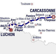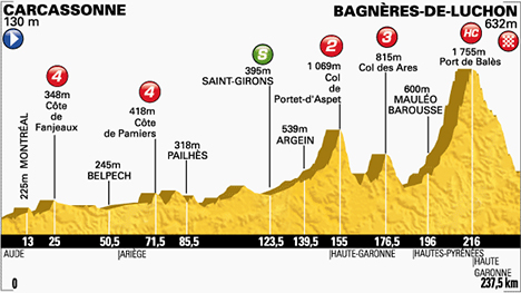 ![]() mardi 22 juillet 2014 ![]() 11h00 (Aude) : D119 Carcassonne (km 0) - L'Auberge (km 8.5) - Montréal (km 13) - La Force (km 17.5) - D102 Fanjeaux (km 24.5) - Côte de Fanjeaux (km 25-GPM4) - Plaigne (près de) (km 43.5) - Belpech (km 50.5) - Marty (km 52) - (Ariège) : La Bardaille (km 60) - Georges (km 62.5) - D10 Pamiers (km 66) - Côte de Pamiers (km 71.5-GPM4) - Les Quatre-Vents (km 78.5) - Gouzes (km 79.5) - Pailhès (km 85.5) - Sabarat (km 93) - Le Mas-d'Azil (km 98) - Grotte du Mas-d'Azil (km 100) - Maury (km 101.5) - D15 Rieubach (km 102) - Le Saret (km 103.5) - Peyruc (km 105.5) - Clermont (km 106) - La Grausse (km 107) - Lafont (km 110-ravitaillement) - D117 La Baure (km 114.5) - D618 Saint-Girons (km 123.5-sprint) - Moulis (km 129) - Luzenac (km 131) - La Forge (km 132) - Engomer (km 132.5) - Audressein (km 137) - Argein (km 139.5) - Aucazein (km 141.5) - Illartein (km 142.5) - Augistrou (km 144.5) - Orgibet (km 145) - Augirein (près de) (km 147) - Saint-Lary (km 149.5) - (Haute-Garonne) : Portet-d'Aspet (km 152.5) - Col de Portet-d'Aspet (km 155) - Pont-de-l'Oule (km 159.5) - Henne Morte (km 160) - Col de Buret (km 166.5) - Juzet-d'Izaut (km 167) - Cazaunous (près de) (km 170.5) - Col des Ares (km 176.5-GPM3) - Antichan (km 180) - Antichan-de-Frontignes (km 180.5) - Fronsac (km 184.5) - D825A Chaum (km 186.5) - Esténos (km 187.5) - (Hautes-Pyrénées) : Saléchan (km 189) - Siradan (km 191) - Balestas (km 194.5) - Cazarilh (km 195) - D925 Mauléon-Barousse (km 196) - Ferrère (km 199.5) - Chalet Saint-Nérée (km 203) - Granges de Crouhens (km 204) - Port de Balès (km 216-GPM.HC) - (Haute-Garonne) : Bourg-d'Oueil (km 222) - Cirès (km 223.5) - Mayrègne (km 225.5) - Saint-Paul-d'Oueil (km km 228) - Benque-Dessous-et-Dessus (près de) (km 230) - D125 Bagnères-de-Luchon/Bd Edmond Rostand (km 237.5). ![]() ![]() ![]() Vidéo DailyMotion ![]() Étape : ![]() 1. Michael Rogers (Aus) en 6h07'10" (moy: 38.810 km/h) 2. Thomas Voeckler (Fra) à 9" 3. Vasil Kiryienka (Blr) 4. José Rodolfo Serpa (Col) 5. Cyril Gautier (Fra) 6. Greg Van Avermaet (Bel) à 13" 7. Michal Kwiatkowski (Pol) à 36" 8. Matteo Montaguti (Ita) à 50" 9. Tom-Jelte Slagter (Hol) à 2'11" 10. Tony Gallopin (Fra) 11. Jan Bakelants (Bel) à 3'33" 12. Florian Vachon (Fra) à 3'45" 13. Anthony Delaplace (Fra) à 4'47" 14. Kévin Reza (Fra) 15. Bernhard Eisel (Aut) à 8'14" 16. Jérémy Roy (Fra) à 8'32" 17. Thibaut Pinot (Fra) 18. Alejandro Valverde (Esp) 19. Jean-Christophe Péraud (Fra) 20. Vincenzo Nibali (Ita) 21. Leopold König (Tch) 22. Jens Keukeleire (Bel) à 8'35" 23. Roger Kluge (All) à 9'07" 24. John Gadret (Fra) à 9'12" 25. Jon Izaguirre Insausti (Esp) 26. Laurens Ten Dam (Hol) à 9'43" 27. Arnold Jeannesson (Fra) 28. Haimar Zubeldia (Esp) à 10'00" 29. Samuel Dumoulin (Fra) à 10'22" 30. Romain Bardet (Fra) 31. Pierre Rolland (Fra) à 10'53" 32. Jürgen Van den Broeck (Bel) à 11'32" 33. Bauke Mollema (Hol) 34. Fränk Schleck (Lux) 35. Amaël Moinard (Fra) à 12'08" 36. Peter Velits (Svq) 37. Tejay Van Garderen (Usa) 38. Christopher Horner (Usa) 39. Geraint Thomas (Gbr) 40. Luis Angel Mate (Esp) 41. Christophe Riblon (Fra) 42. Yury Trofimov (Rus) 43. Tanel Kangert (Est) 44. Ben Gastauer (Lux) 45. Steven Kruijswijk (Hol) 46. Bartosz Huzarski (Pol) 47. Peter Stetina (Usa) 48. Sylvain Chavanel (Fra) à 13'40" 49. Brice Feillu (Fra) à 14'20" 50. Jérôme Pineau (Fra) 51. Michael Albasini (Sui) à 14'37" 52. Beñat Intxausti (Esp) à 14'52" 53. Yukiya Arashiro (Jap) à 16'21" 54. Jan Barta (Tch) 55. Tom Dumoulin (Hol) 56. Florian Guillou (Fra) 57. Richie Porte (Aus) 58. Sébastien Reichenbach (Sui) 59. Marcel Wyss (Sui) 60. Nicolas Roche (Irl) 61. José Joaquin Rojas (Esp) à 20'17" 62. Giovanni Visconti (Ita) 63. Jens Voigt (All) 64. David Lopez Garcia (Esp) 65. Bram Tankink (Hol) 66. Markel Irizar (Esp) 67. Mikel Nieve (Esp) 68. Joaquin Rodriguez (Esp) 69. Gatis Smukulis (Let) 70. Lars Ytting Bak (Dan) 71. Michele Scarponi (Ita) 72. Jakob Fuglsang (Dan) 73. Jesus Herrada (Esp) 74. Johan Vansummeren (Bel) à 20'44" 75. Sébastien Minard (Fra) 76. Koen De Kort (Hol) 77. Michael Schär (Sui) 78. Nelson Felipe Oliveira (Por) 79. Grégory Rast (Sui) 80. Tiago José Machado (Por) 81. Kristijan Durasek (Cro) 82. Mikaël Chérel (Fra) 83. Alexandre Pichot (Fra) 84. Imanol Erviti (Esp) 85. José João Mendes (Por) 86. Benjamin King (Usa) 87. Armindo Fonseca (Fra) 88. Adam Hansen (Aus) 89. Sergio Miguel Paulinho (Por) 90. Rein Taaramäe (Est) 91. Matthew Busche (Usa) 92. Lieuwe Westra (Hol) 93. Rudy Molard (Fra) 94. Blel Kadri (Fra) 95. Simon Clarke (Aus) à 23'52" 96. Daniel Oss (Ita) 97. Mickaël Delage (Fra) à 24'33" 98. William Bonnet (Fra) 99. Marcus Burghardt (All) 100. Roy Curvers (Hol) 101. Lars Boom (Hol) 102. Cédric Pineau (Fra) 103. Matthieu Ladagnous (Fra) 104. Perrig Quemeneur (Fra) 105. Maarten Wynants (Bel) 106. Bryan Coquard (Fra) 107. Tony Martin (All) 108. Paul Voss (All) 109. Rafal Majka (Pol) 110. Michal Golas (Pol) 111. Albert Timmer (Hol) 112. Tom Leezer (Hol) 113. Nicolas Edet (Fra) 114. Yohann Gène (Fra) 115. Arnaud Gérard (Fra) 116. Cyril Lemoine (Fra) 117. Simon Gerrans (Aus) à 26'47" 118. Jürgen Roelandts (Bel) 119. André Greipel (All) 120. Matteo Tosatto (Ita) 121. Christian Meier (Can) 122. Marcel Sieberg (All) 123. Martin Elmiger (Sui) 124. Sep Vanmarcke (Bel) 125. Romain Feillu (Fra) 126. Niki Terpstra (Hol) 127. Kristjan Koren (Slo) 128. Alessandro Petacchi (Ita) 129. Heinrich Haussler (Aus) 130. Fabio Sabatini (Ita) 131. Luke Durbridge (Aus) 132. Alex Howes (Usa) 133. Peter Sagan (Svq) 134. Zakkari Dempster (Aus) 135. John Degenkolb (All) 136. Benoît Jarrier (Fra) 137. Svein Tuft (Can) 138. Alexander Kristoff (Nor) 139. Andreas Schillinger (All) 140. Marcel Kittel (All) 141. Tom Veelers (Hol) 142. Simon Spilak (Slo) 143. Elia Viviani (Ita) 144. Ruben Plaza (Esp) 145. Cheng Ji (Chn) 146. Maxim Iglinskiy (Kaz) 147. Andriy Grivko (Ukr) 148. Adrien Petit (Fra) 149. Mic