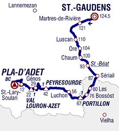 ![]() mercredi 23 juillet 2014 ![]() 13h45 (Haute-Garonne) : D8 Saint-Gaudens (km 0) - Labarthe-Rivière (près de) (km 1.5) - Martres-de-Rivière (km 3.5) - Barbazan (près de) (km 13.5) - Luscan (près de) (km 14.5) - Galié (près de) (km 18.5) - Ore (près de) (km 20) - Chaum (près de) (km 24.5) - Saint-Béat (km 31-sprint) - Arlos (km 32.5) - Sériail (km 37.5) - (ESPAGNE) - (Lleida) : Pontaut (km 42) - Les (km 44) - N141 Bossòst (km 48) - Col du Portillon (km 57.5-GPM1) - (FRANCE) - (Haute-Garonne) : D618A Saint-Mamet (km 65) - D618 Bagnères-de-Luchon (km 68.5-ravitaillement) - Saint-Aventin (km 73.5) - Castillon-de-Larboust (près de) (km 74.5) - Cazeaux-de-Larboust (km 75) - Garin (km 76) - Col de Peyresourde (km 82-GPM1) - (Hautes-Pyrénées) : Escadaoux (km 89) - Estarvielle (km 90) - Armenteule (km 90.5) - Arenvielle (km 92.5) - D25 Loudenvielle (km 93) - D225 Génos (km 95) - Col de Val Louron-Azet (km 102.5) - Azet (km 106.5) - D25 Estensan (km 108.5) - Sailhan (km 110) - D123 Saint-Lary-Soulan (km 112.5) - Vignec (km 114) - Soulan (km 119) - Espiaube (km 121.5) - Saint-Lary-Soulan/Pla d'Adet (km 124.5-GPM.HC). ![]() ![]() ![]() Vidéo DailyMotion ![]() Étape : ![]() 1. Rafal Majka (Pol) en 3h35'23" (moy: 34.682 km/h) 2. Giovanni Visconti (Ita) à 29" 3. Vincenzo Nibali (Ita) à 46" 4. Jean-Christophe Péraud (Fra) 5. Alessandro De Marchi (Ita) à 49" 6. Pierre Rolland (Fra) à 52" 7. Fränk Schleck (Lux) à 1'12" 8. Bauke Mollema (Hol) 9. Nicolas Roche (Irl) à 1'25" 10. Alejandro Valverde (Esp) à 1'35" 11. Thibaut Pinot (Fra) à 1'40" 12. Romain Bardet (Fra) 13. Tejay Van Garderen (Usa) 14. Laurens Ten Dam (Hol) à 1'50" 15. Jon Izagirre (Esp) 16. Mikel Nieve (Esp) à 2'01" 17. Kristijan Durasek (Cro) à 2'05" 18. Haimar Zubeldia (Esp) à 2'34" 19. Jürgen Van den Broeck (Bel) à 2'52" 20. Amaël Moinard (Fra) à 3'02" 21. Jesus Herrada (Esp) à 3'39" 22. John Gadret (Fra) à 3'54" 23. Leopold König (Tch) 24. Ben Gastauer (Lux) 25. Marcel Wyss (Sui) à 4'54" 26. Tanel Kangert (Est) à 5'02" 27. Peter Velits (Svq) à 5'25" 28. Steven Kruijswijk (Hol) à 5'40" 29. Christopher Horner (Usa) 30. Yury Trofimov (Rus) 31. Joaquin Rodriguez (Esp) à 5'54" 32. Brice Feillu (Fra) à 6'12" 33. Jan Bakelants (Bel) à 6'36" 34. Sylvain Chavanel (Fra) à 7'38" 35. Richie Porte (Aus) 36. Arnold Jeannesson (Fra) à 8'06" 37. Cyril Gautier (Fra) à 9'27" 38. Thomas Voeckler (Fra) 39. Alex Howes (Usa) à 14'07" 40. Johan Vansummeren (Bel) à 14'17" 41. Michael Schär (Sui) 42. Michael Rogers (Aus) 43. Bram Tankink (Hol) 44. Peter Stetina (Usa) 45. Sébastien Reichenbach (Sui) 46. Perrig Quemeneur (Fra) 47. Benjamin King (Usa) 48. Jan Barta (Tch) 49. Luis Angel Mate (Esp) 50. Nicolas Edet (Fra) 51. Michele Scarponi (Ita) 52. Nelson Felipe Oliveira (Por) 53. Paul Voss (All) 54. Tiago José Machado (Por) 55. Jérémy Roy (Fra) 56. Matthew Busche (Usa) 57. Geraint Thomas (Gbr) 58. Rein Taaramäe (Est) 59. David Lopez Garcia (Esp) 60. Yukiya Arashiro (Jap) 61. Bartosz Huzarski (Pol) 62. José Joaquin Rojas (Esp) à 16'08" 63. Rudy Molard (Fra) à 16'49" 64. Cédric Pineau (Fra) 65. Sergio Miguel Paulinho (Por) 66. Matthieu Ladagnous (Fra) 67. Alexandre Pichot (Fra) 68. Anthony Delaplace (Fra) 69. Markel Irizar (Esp) 70. Tony Gallopin (Fra) 71. Florian Guillou (Fra) 72. Beñat Intxausti (Esp) 73. Tom Dumoulin (Hol) 74. José Rodolfo Serpa (Col) 75. Maxim Iglinskiy (Kaz) à 17'00" 76. Vasili Kiryienka (Blr) à 17'06" 77. Matteo Montaguti (Ita) à 19'37" 78. Arnaud Gérard (Fra) 79. Christian Meier (Can) 80. Blel Kadri (Fra) 81. Greg Van Avermaet (Bel) 82. Jakob Fuglsang (Dan) à 22'26" 83. Dmitriy Gruzdev (Kaz) à 22'52" 84. Andriy Grivko (Ukr) 85. Tony Martin (All) à 23'32" 86. Jens Voigt (All) 87. Koen De Kort (Hol) 88. Bernhard Eisel (Aut) 89. Martin Elmiger (Sui) 90. Jens Keukeleire (Bel) 91. Marco Marcato (Ita) 92. Fabio Sabatini (Ita) 93. Sébastien Minard (Fra) 94. Florian Vachon (Fra) 95. Grégory Rast (Sui) 96. Lars Boom (Hol) 97. Roy Curvers (Hol) 98. Lars Ytting Bak (Dan) 99. Andreas Schillinger (All) 100. Michael Albasini (Sui) 101. Luke Durbridge (Aus) 102. Michael Mørkøv (Dan) 103. Kévin Reza (Fra) 104. Maarten Wynants (Bel) 105. Imanol Erviti (Esp) 106. Sep Vanmarcke (Bel) 107. Matteo Tosatto (Ita) 108. Simon Clarke (Aus) 109. Tom Leezer (Hol) 110. Jérôme Pineau (Fra) 111. Maciej Bodnar (Pol) 112. John Degenkolb (All) 113. Daniele Bennati (Ita) à 23'40" 114. Daniel Oss (Ita) 115. Peter Sagan (Svq) à 23'42" 116. Jean-Marc Marino (Fra) à 23'52" 117. Yohann Gène (Fra) à 24'01" 118. Albert Timmer (Hol) à 24'14" 119. Bryan Coquard (Fra) 120. Jürgen Roelandts (Bel) à 24'51" 121. Roger Kluge (All) 122. Zakkari Dempster (Aus) 123. Alessandro Vanotti (Ita) à 25'33" 124. Ruben Plaza (Esp) à 25'43" 125. Christophe Riblon (Fra) 126. Michal Golas (Pol) à 25'59" 127. Niki Terpstra (Hol) 128. Michal Kwiatkowski (Pol) 129. José João Mendes (Por) 130. Danny Pate (Usa) 131. Kristjan Koren (Slo) à 26'16" 132. Ramunas Navardauskas (Lit) à 26'50" 133. Davide Cimolai (Ita) 134. Svein Tuft (Can) à 27'46" 135. André Greipel (All) 136. Tom-Jelte Slagter (Hol) 137. Mickaël Delage (Fra) 138. Adam Hansen (Aus) 139. Armindo Fonseca (Fra) 140. Elia Viviani (Ita) 141. Benoît Jarrier (Fra) 142. Heinrich Haussler (Aus) 143. Lieuwe Westra (Hol) 144. Vladimir Isaichev (Rus) 145. Jack Bauer (Nzl) 146. Matteo Trentin (Ita) 147. Alessandro Petacchi (Ita) 148. Julien Simon (Fra) 149. Jean-Marc Bideau (Fra) 150. Arnaud Démare (Fra) 151. Gatis Smukulis (Let) 152. Mark Renshaw (Aus) 153. Sebastian Langeveld (Hol) 154. Mikaël Chérel (Fra) 155. Alexander Kristoff (Nor) 156. Luca Paolini (Ita) 157. William Bonnet (Fra) 158. Romain Feillu (Fra) 159. Cheng Ji (Chn) 160. Marcus Burghardt (All) 161. Samuel Dumoulin (Fra) à 27'54" 162. Marcel Sieberg (All) à 27'56" 163. Cyril Lemoine (Fra) 164. Adrien Petit (Fra) 165. Tom Veelers (Hol) à 28'55" 166. Marcel Kittel (All) Non-partants : Reto Hollens