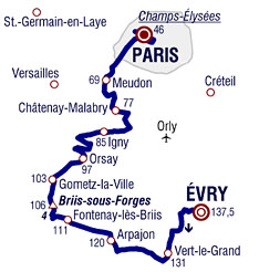 ![]() dimanche 27 juillet 2014 ![]() 15h15 (Essonne) : D31 Évry (km 0) - Bondoufle (km 2.5) - D26 Vert-le-Grand (près de) (km 6) - Leudeville (km 9.5) - La Norville (km 16) - D97 Arpajon (km 17) - Ollainville (km 20) - Bel Air (km 24.5) - Fontenay-lès-Briis (km 26) - Briis-sous-Forges (km 29) - Côte de Briis-sous-Forges (km 31-GPM4) - Clos-Moisson (km 31) - Frileuse (km 32) - D988 Gometz-la-Ville (km 34) - Gometz-le-Châtel (km 36) - Bures-sur-Yvette (km 38) - D446 Orsay (km 40) - Vauhallan (km 50.5) - Igny (km 52.5) - Massy (km 55) - (Hauts-de-Seine) : D63 Antony (km 57) - (Essonne) : D128 Verrières-le-Buisson (km 58.5) - (Hauts-de-Seine) : Antony (km 60) - D2 Châtenay-Malabry (km 60.5) - Le Plessis-Robinson (km 63.5) - D406 Clamart (km 65) - Meudon (km 68.5) - D101 Issy-Les-Moulineaux (km 71) - D1 Boulogne-Billancourt (km 72) - (Paris) : Paris/entrée (km 73.5) - Entrée circuit (km 81.5) - 1er Passage sur la ligne (km 83) - 2ème passage (km 90) - Champs-Élysées (km 91-sprint) - 3ème passage (km 96.5) - 8ème passage (km 130.5) - Paris/Champs-Élysées (km 137.5). ![]() ![]() ![]() Vidéo DailyMotion ![]() Étape : ![]() 1. Marcel Kittel (All) en 3h20'50" (moy: 41.078 km/h) 2. Alexander Kristoff (Nor) 3. Ramunas Navardauskas (Lit) 4. André Greipel (All) 5. Mark Renshaw (Aus) 6. Bernhard Eisel (Aut) 7. Bryan Coquard (Fra) 8. Alessandro Petacchi (Ita) 9. Peter Sagan (Svq) 10. Romain Feillu (Fra) 11. Daniele Bennati (Ita) 12. Arnaud Démare (Fra) 13. Greg Van Avermaet (Bel) 14. Adrien Petit (Fra) 15. Sep Vanmarcke (Bel) 16. Daniel Oss (Ita) 17. Davide Cimolai (Ita) 18. Romain Bardet (Fra) à 4" 19. Tejay Van Garderen (Usa) 20. Johan Vansummeren (Bel) 21. Roger Kluge (All) à 6" 22. Kévin Reza (Fra) 23. Jack Bauer (Nzl) 24. Tom Veelers (Hol) 25. Elia Viviani (Ita) à 9" 26. Jens Voigt (All) 27. Alejandro Valverde (Esp) 28. Samuel Dumoulin (Fra) 29. Peter Velits (Svq) 30. Bram Tankink (Hol) 31. Matteo Montaguti (Ita) 32. Sylvain Chavanel (Fra) 33. Haimar Zubeldia (Esp) 34. Sébastien Minard (Fra) 35. Christophe Riblon (Fra) 36. Jean-Christophe Péraud (Fra) 37. Christopher Horner (Usa) 38. Nelson Felipe Oliveira (Por) 39. Geraint Thomas (Gbr) 40. Mickaël Delage (Fra) à 15" 41. Koen De Kort (Hol) 42. Martin Elmiger (Sui) 43. Michael Albasini (Sui) 44. Anthony Delaplace (Fra) 45. Julien Simon (Fra) 46. Michael Schär (Sui) 47. Bauke Mollema (Hol) 48. William Bonnet (Fra) 49. Lars Boom (Hol) 50. Laurens Ten Dam (Hol) 51. Markel Irizar (Esp) 52. Luis Angel Mate (Esp) 53. Fränk Schleck (Lux) 54. Leopold König (Tch) 55. Peter Stetina (Usa) 56. Thibaut Pinot (Fra) 57. Jan Barta (Tch) 58. Pierre Rolland (Fra) 59. Mikel Nieve (Esp) 60. Tom Dumoulin (Hol) 61. David Lopez Garcia (Esp) 62. Jean-Marc Bideau (Fra) 63. Matteo Trentin (Ita) 64. Jérémy Roy (Fra) 65. Imanol Erviti (Esp) 66. Cyril Gautier (Fra) 67. Yury Trofimov (Rus) 68. Grégory Rast (Sui) à 24" 69. Michael Mørkøv (Dan) 70. Gatis Smukulis (Let) 71. Jon Izagirre (Esp) 72. Andriy Grivko (Ukr) 73. Matthieu Ladagnous (Fra) 74. Jürgen Roelandts (Bel) 75. Lieuwe Westra (Hol) 76. Marco Marcato (Ita) 77. Florian Guillou (Fra) 78. Michele Scarponi (Ita) 79. Brice Feillu (Fra) 80. Alessandro Vanotti (Ita) 81. Vincenzo Nibali (Ita) 82. Benoît Jarrier (Fra) 83. Marcel Wyss (Sui) 84. Ben Gastauer (Lux) 85. Matthew Busche (Usa) 86. Michal Golas (Pol) 87. Kristijan Koren (Slo) 88. Kristjan Durasek (Cro) 89. José Rodolfo Serpa (Col) 90. Mikaël Chérel (Fra) 91. Bartosz Huzarski (Pol) 92. Jürgen Van den Broeck (Bel) 93. Rafal Majka (Pol) 94. Steven Kruijswijk (Hol) 95. Jens Keukeleire (Bel) 96. Tom-Jelte Slagter (Hol) 97. Ruben Plaza (Esp) 98. Maciej Bodnar (Pol) 99. Marcel Sieberg (All) 100. Dmitriy Gruzdev (Kaz) 101. Jakob Fuglsang (Dan) 102. John Gadret (Fra) 103. Tanel Kangert (Est) 104. Sergio Miguel Paulinho (Por) 105. Sebastian Langeveld (Hol) 106. Andreas Schillinger (All) 107. Michael Rogers (Aus) à 34" 108. John Degenkolb (All) à 36" 109. Tony Martin (All) à 39" 110. Niki Terpstra (Hol) 111. Perrig Quemeneur (Fra) à 41" 112. Matteo Tosatto (Ita) 113. Nicolas Roche (Irl) 114. Jan Bakelants (Bel) 115. Yohann Gène (Fra) à 45" 116. Tiago José Machado (Por) à 47" 117. Paul Voss (All) 118. Yukiya Arashiro (Jap) 119. Thomas Voeckler (Fra) à 55" 120. Giovanni Visconti (Ita) 121. José João Mendes (Por) à 57" 122. Richie Porte (Aus) 123. Armindo Fonseca (Fra) 124. Albert Timmer (Hol) 125. Sébastien Reichenbach (Sui) 126. Roy Curvers (Hol) 127. Alex Howes (Usa) 128. Benjamin King (Usa) 129. Amaël Moinard (Fra) 130. Beñat Intxausti (Esp) 131. Maxim Iglinskiy (Kaz) 132. Nicolas Edet (Fra) à 1'02" 133. Cédric Pineau (Fra) 134. Adam Hansen (Aus) à 1'04" 135. Fabio Sabatini (Ita) à 1'06" 136. Marcus Burghardt (All) à 1'08" 137. Luca Paolini (Ita) à 1'12" 138. Alessandro De Marchi (Ita) à 1'17" 139. Jean-Marc Marino (Fra) 140. Simon Clarke (Aus) à 1'20" 141. Luke Durbridge (Aus) 142. Christian Meier (Can) 143. Danny Pate (Usa) 144. Svein Tuft (Can) 145. Rudy Molard (Fra) 146. Joaquin Rodriguez (Esp) 147. Vladimir Isaichev (Rus) 148. Tony Gallopin (Fra) 149. Jérôme Pineau (Fra) 150. Rein Taaramäe (Est) 151. Arnaud Gérard (Fra) 152. Maarten Wynants (Bel) 153. Tom Leezer (Hol) 154. Arnold Jeannesson (Fra) 155. Cyril Lemoine (Fra) à 1'26" 156. Michal Kwiatkowski (Pol) à 1'30" 157. Lars Ytting Bak (Dan) à 1'41" 158. Zakkari Dempster (Aus) à 24" 159. Florian Vachon (Fra) 160. Jesus Herrada (Esp) à 1'59" 161. Vasili Kiryienka (Blr) à 3'39" 162. Blel Kadri (Fra) à 4'05" 163. Alexandre Pichot (Fra) à 4'33" 164. Cheng Ji (Chn) à 9'25" Classement par points : km 91 - Paris/Champs Élysées 1. Jens Voigt (All) 20 pts 2. Michael Albasini (Sui) 17 3. Geraint Thomas (Gbr) 15 4. Luis Angel Mate (Esp) 13 5. Lars Ytting Bak (Dan) 11 6. Lars Boom (Hol) 10 7. Christopher Horner (Usa) 9 8. Sebastian Langeveld (Hol) 8 9. Luke Durbridge (Aus) 7 10. Marcel Sieberg (All) 6 11. Andriy Grivko (Ukr) 5 12. Lieuwe Westra (Hol) 4 13.