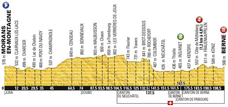 ![]() lundi 18 juillet 2016 ![]() 12h55 (Jura) : D470 Moirans-en-Montagne (km 0 ) - Meussia (km 2.5) - D27 Soucia (km 8.5) - Clairvaux-les-Lacs (km 12) - D678 Boissia (km 15.5) - D27 Charézier (près de) (km 18.5) - Charcier (km 20.5) - Doucier (km 25.5) - Lac de Chalain (km 29.5) - Montigny-sur-l'Ain (km 33) - Pont-du-Navoy (km 35) - Crotenay (km 38.5) - D5 Champagnole (km 45) - Equevillon (près de) (km 51) - Onglières (km 60) - Censeau (km 64.5) - D47 Bonnevaux (km 74) - D9 Vaux-et-Chantegrue (km 80.5) - Les Granges-Sainte-Marie (km 86) - D437 Malbuisson (km 87.5) - Chaon (km 93.5) - N57 Le Frambourg (km 98.5) - D67B Les Verrières-de-Joux (km 106) - (SUISSE) - (Neuchâtel) : R10 Les Verrières (km 107.5) - Fleurier (près de) (km 116.5) - Travers (km 125) - Brot-Dessous (km 132.5) - Rochefort (km 137.5) - Bôle (km 140.5) - Colombier (km 141.5) - R5 Auvernier (km 146.5) - Neuchâtel (km 151.5) - Hauterive (km 156) - Saint-Blaise (km 157) - Marin (km 158.5) - Thielle (km 161.5) - (Berne) : R10 Ins/Anet (km 167.5-sprint) - Müntschemier/Monsmier (km 170.5) - (Fribourg) : Kerzers/Chiètres (km 175.5) - (Berne) : Gurbrü/Corbruil (km 178) - Klein Gümmenen (km 181.5) - R1 Côte de Mühleberg (km 183.5-GPM4) - Mühleberg (km 184) - Frauenkappelen (km 190.5) - Nidderbottigen (km 194.5) - Niederwangen (km 196) - Köniz (km 198.5) - Berne / entrée (km 201.5) - R6 Berne / Papiermühlestrasse (km 209). ![]() ![]() ![]() Vidéo DailyMotion ![]() Étape : ![]() 1. Peter Sagan (Svq) en 4h26'02" (moy : 47.136 km/h) 2. Alexander Kristoff (Nor) 3. Sondre Holst Enger (Nor) 4. John Degenkolb (All) 5. Michael Matthews (Aus) 6. Fabian Cancellara (Sui) 7. Sep Vanmarcke (Bel) 8. Ariel Maximiliano Richeze (Arg) 9. Edvald Boasson Hagen (Nor) 10. Greg Van Avermaet (Bel) 11. Alejandro Valverde (Esp) 12. Patrick Konrad (Aut) 13. Romain Bardet (Fra) 14. Christopher Froome (Gbr) 15. Louis Meintjes (Afs) 16. Sébastien Reichenbach (Sui) 17. Roman Kreuziger (Tch) 18. Adrien Petit (Fra) 19. Richie Porte (Aus) 20. Adam Yates (Gbr) 21. Bauke Mollema (Hol) 22. Wilco Kelderman (Hol) 23. Tejay Van Garderen (Usa) 24. Mark Cavendish (Gbr) 25. Stef Clement (Hol) 26. Joaquin Rodriguez (Esp) 27. Fabio Aru (Ita) 28. Sergio Luis Henao (Col) 29. Daniel Martin (Irl) 30. Nairo Alexander Quintana (Col) 31. Geraint Thomas (Gbr) 32. Julien Vermote (Bel) 33. Simon Geschke (All) 34. Samuel Dumoulin (Fra) 35. Warren Barguil (Fra) 36. Oliver Naesen (Bel) 37. Luis Angel Mate (Esp) 38. Borut Bozic (Slo) 39. Ramunas Navardauskas (Lit) 40. Petr Vakoc (Tch) 41. Emanuel Buchmann (All) 42. Anthony Roux (Fra) 43. Imanol Erviti (Esp) 44. Armindo Fonseca (Fra) 45. André Greipel (All) 46. Jakob Fuglsang (Dan) 47. Mikaël Chérel (Fra) 48. Fränk Schleck (Lux) 49. Pierre Rolland (Fra) 50. Alexis Vuillermoz (Fra) 51. Jan Polanc (Slo) 52. Adam Hansen (Aus) 53. Marcus Burghardt (All) 54. Damiano Caruso (Ita) 55. Luis Leon Sanchez (Esp) 56. Reto Hollenstein (Sui) 57. Haimar Zubeldia (Esp) 58. Jurgen Roelandts (Bel) 59. Michael Schär (Sui) 60. Paul Voss (All) à 59" 61. Jan Barta (Tch) 62. Martin Elmiger (Sui) 63. Diego Rosa (Ita) 64. Vincenzo Nibali (Ita) 65. Bartosz Huzarski (Pol) 66. Grégory Rast (Sui) 67. Domenico Pozzovivo (Ita) 68. Arthur Vichot (Fra) 69. Jan Bakelants (Bel) 70. Paul Martens (All) 71. Robert Kiserlovski (Cro) 72. Marco Haller (Aut) 73. Daniel Moreno (Esp) 74. Reinardt Janse Van Rensburg (Afs) 75. Kristjan Koren (Slo) à 1'20" 76. Tsgabu Gebremaryam Grmay (Eth) 77. Timo Roosen (Hol) 78. Paolo Tiralongo (Ita) 79. Tanel Kangert (Est) 80. Steve Morabito (Sui) 81. Daryl Impey (Afs) 82. Georg Preidler (Aut) 83. Roy Curvers (Hol) 84. Tom Dumoulin (Hol) 85. Markel Irizar (Esp) 86. Ilnur Zakarin (Rus) 87. Luka Pibernik (Slo) 88. Gorka Izagirre (Esp) 89. Jon Izagirre (Esp) 90. Brice Feillu (Fra) 91. Cyril Gautier (Fra) 92. Ben Gastauer (Lux) 93. Jasper Stuyven (Bel) à 1'30" 94. Dylan Groenewegen (Hol) à 1'58" 95. Mathew Hayman (Aus) à 2'03" 96. Daniel Teklehaimanot (Ery) 97. Matteo Bono (Ita) à 2'08" 98. Dylan Van Baarle (Hol) à 2'11" 99. Maarten Wynants (Bel) à 2'27" 100. Michael Albasini (Sui) à 2'28" 101. Ramon Sinkeldam (Hol) à 2'30" 102. Ian Stannard (Gbr) à 2'43" 103. Davide Cimolai (Ita) 104. Alexey Lutsenko (Kaz) 105. Sylvain Chavanel (Fra) à 2'54" 106. Mikel Nieve (Esp) 107. Mikel Landa (Esp) 108. Cesare Benedetti (Ita) 109. Andriy Grivko (Ukr) 110. Jarlinson Pantano (Col) 111. Winner Andrew Anacona (Col) 112. Peter Stetina (Usa) 113. Chris Anker Sørensen (Dan) 114. Kristijan Durasek (Cro) 115. Lars Ytting Bak (Dan) 116. Fabio Sabatini (Ita) 117. Antoine Duchesne (Can) 118. William Bonnet (Fra) 119. Rui Alberto Costa (Por) 120. Yukiya Arashiro (Jap) 121. Daniel Navarro (Esp) 122. Vasil Kiryienka (Blr) 123. Anthony Delaplace (Fra) 124. Florian Vachon (Fra) 125. Jérôme Coppel (Fra) 126. Ruben Plaza (Esp) 127. Jérôme Cousin (Fra) 128. Yohann Gène (Fra) 129. Nelson Felipe Oliveira (Por) 130. Eduardo Sepulveda (Arg) à 3'11" 131. Serge Pauwels (Bel) à 3'12" 132. Cyril Lemoine (Fra) à 3'15" 133. Luke Rowe (Gbr) à 3'33" 134. Wouter Poels (Hol) 135. Oscar Gatto (Ita) à 3'44" 136. Angel Vicioso (Esp) 137. Rafal Majka (Pol) à 3'53" 138. Laurens Ten Dam (Hol) à 4'00" 139. Bernhard Eisel (Aut) 140. Robert Wagner (All) 141. Albert Timmer (Hol) 142. Bert-Jan Lindeman (Hol) 143. Stephen Cummings (Gbr) à 4'18" 144. Amaël Moinard (Fra) 145. Brent Bookwalter (Usa) 146. Jacopo Guarnieri (Ita) 147. Thomas De Gendt (Bel) à 4'25" 148. Marcel Sieberg (All) à 4'27" 149. Bryan Coquard (Fra) à 4'50" 150. Pierre-Luc Périchon (Fra) à 6'53" 151. Christopher Juul Jensen (Dan) 152. Luke Durbridge (Aus) 153. Natnael Berhane (Ery) 154. Geoffrey Soupe (Fra) 155. George Bennett (Nzl) à 7'11" 156. Rohan Dennis (Aus) 157. Leigh Howard (Aus) à 7'23" 158. Gregory Henderson (Nzl) 159. Andreas Schillinger (All) 160. Alex Howes (Usa) 161. Tom-Jelte Slagter (Hol) 162. Vegard Breen (Nor) 163. Daniel McLay (Gbr) 164. Shane Archbold (Nzl) 1