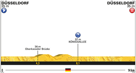 ![]() DÜSSERDORF (All) > DÜSSELDORF, 14 km CLM samedi 1er juillet 2017 ![]() 15h15 (ALLEMAGNE) - Düsseldorf / Stockumer Kirchstrasse (km 0) - Rotterdam Strasse (km 0.4) - Cecillienallee (km 2) - Joseph-Beuys Ufer (km 3.5) - Oederallee (km 3.9) - Hofgartenampe (km 4.2) - Oberkasseler Brücke (km 4.3) - Kaiser-Friedrich Ring (km 5.1) - Kaiser-Wilhelm Ring (km 5.5) - Rheinkniebrücke (km 6.1) - Kavallieriestrasse (km 7.3) - Haroldstrasse (km 7.5) - Graf-Adolf Platz (km 7.8) - Königsallee (km 8.1) - Theodor-Körner Strasse (km 8.8) - Heinrich-Heine Allee (km 8.9) - Fritz-Roeber Strasse (km 9.4) - Joseph-Beuys Ufer (km 9.9) - Cecilienallee (km 10.5) - Rotterdamer Strasse (km 12.5) - Düsseldorf / Rotterdamer Strasse (km 14). ![]() ![]() ![]() Vidéo DailyMotion ![]() Étape : ![]() 1. Geraint Thomas (Gbr) en 16'04" (moy : 52.282 km/h) 2. Stefan Küng (Sui) à 5" 3. Vasil Kiryienka (Blr) à 7" 4. Tony Martin (All) à 8" 5. Matteo Trentin (Ita) à 10" 6. Christopher Froome (Gbr) à 12" 7. Jos Van Emden (Hol) à 15" 8. Michal Kwiatkowski (Pol) 9. Marcel Kittel (All) à 16" 10. Edvald Boasson Hagen (Nor) 11. Nikias Arndt (All) 12. Taylor Phinney (Usa) à 17" 13. Andriy Grivko (Ukr) 14. Daryl Impey (Afs) à 19" 15. Jonathan Castroviejo (Esp) à 20" 16. Michael Matthews (Aus) 17. Pierre Latour (Fra) à 25" 18. Peter Sagan (Svq) 19. Andrey Amador (Crc) à 27" 20. Alexey Lutsenko (Kaz) à 29" 21. Philippe Gilbert (Bel) à 30" 22. Robert Gesink (Hol) à 31" 23. Sonny Colbrelli (Ita) à 32" 24. Tim Wellens (Bel) 25. Maciej Bodnar (Pol) à 33" 26. Timo Roosen (Hol) à 34" 27. Alexander Kristoff (Nor) à 36" 28. Reto Hollenstein (Sui) 29. Simon Yates (Gbr) à 37" 30. Fabio Felline (Ita) 31. Zdenek Stybar (Tch) à 39" 32. Alessandro De Marchi (Ita) 33. Emanuel Buchmann (All) à 40" 34. Paul Martens (All) 35. Jesus Herrada (Esp) 36. Jasha Sütterlin (All) à 41" 37. Mike Teunissen (Hol) 38. Nils Politt (All) 39. Greg Van Avermaet (Bel) à 42" 40. Michael Albasini (Sui) 41. Damien Howson (Aus) à 43" 42. Diego Ulissi (Ita) 43. Michael Schär (Sui) à 44" 44. Dylan Van Baarle (Hol) 45. Robert Wagner (All) à 45" 46. Ignatas Konovalovas (Lit) à 46" 47. Simon Geschke (All) 48. Damiano Caruso (Ita) à 47" 49. Richie Porte (Aus) 50. Imanol Erviti (Esp) à 48" 51. Sylvain Chavanel (Fra) 52. Jarlinson Pantano (Col) 53. Nairo Quintana (Col) 54. Rafal Majka (Pol) à 49" 55. Andrew Talansky (Usa) 56. Jack Bauer (Nzl) 57. Daniel Martin (Irl) 58. John Degenkolb (All) 59. Arnaud Démare (Fra) 60. Thibaut Pinot (Fra) à 50" 61. Romain Sicard (Fra) 62. Albert Timmer (Hol) à 51" 63. Romain Bardet (Fra) 64. Alberto Bettiol (Ita) à 52" 65. Primoz Roglic (Slo) 66. Fabio Aru (Ita) 67. Lilian Calmejane (Fra) à 53" 68. Alberto Contador (Esp) à 54" 69. Carlos Betancur (Col) 70. Jakob Fuglsang (Dan) 71. Koen De Kort (Hol) 72. Dmitriy Gruzdev (Kaz) 73. Michael Valgren Andersen (Dan) à 55" 74. Dario Cataldo (Ita) 75. Stephen Cummings (Gbr) à 56" 76. Daniele Bennati (Ita) 77. Christian Knees (All) 78. Roman Kreuziger (Tch) 79. André Greipel (All) à 57" 80. Julien Vermote (Bel) à 58" 81. Warren Barguil (Fra) à 59" 82. Rudy Molard (Fra) 83. Pierre Luc Périchon (Fra) 84. Lars Ytting Bak (Dan) 85. Jurgen Roelandts (Bel) à 1'00" 86. Danilo Wyss (Sui) 87. Nicolas Edet (Fra) 88. Mathew Hayman (Aus)à 1'01" 89. Cyril Lemoine (Fra) 90. Alexis Vuillermoz (Fra) à 1'02" 91. Simon Clarke (Aus) 92. Markel Irizar (Esp) 93. Laurens Ten Dam (Hol) à 1'03" 94. Maurits Lammertink (Hol) 95. Rigoberto Uran (Col) 96. Jens Keukeleire (Bel) à 1'04" 97. Maxime Bouet (Fra) 98. Tiago Machado (Por) 99. Jan Bakelants (Bel) à 1'05" 100. Haimar Zubeldia (Esp) à 1'06" 101. Nathan Brown (Usa) 102. Mikel Landa (Esp) à 1'08" 103. Ben Swift (Gbr) 104. Mathias Frank (Sui) à 1'09" 105. Eduardo Sepulveda (Arg) 106. Reinardt Janse Van Rensburg (Afs) 107. Serge Pauwels (Bel) à 1'10" 108. Tsgabu Grmay (Eth) 109. Jay McCarthy (Aus) 110. Michael Gogl (Aut) 111. Marcel Sieberg (All) à 1'11" 112. Vegard Stake Laengen (Nor) 113. Louis Meintjes (Afs) à 1'12" 114. Daniel McLay (Gbr) 115. Manuele Mori (Ita) 116. Esteban Chaves (Col) à 1'13" 117. Ondrej Cink (Tch) 118. Ramon Sinkeldam (Hol) 119. Ben Gastauer (Lux) 120. Christophe Laporte (Fra) à 1'14" 121. Fabio Sabatini (Ita) 122. Nicolas Roche (Irl) 123. Tiesj Benoot (Bel) à 1'15" 124. Pierre Rolland (Fra) à 1'16" 125. Sergio Henao (Col) 126. Oliver Naesen (Bel) 127. Axel Domont (Fra) 128. Gianluca Brambilla (Ita) 129. Frederik Backaert (Bel) à 1'17" 130. Florian Vachon (Fra) 131. Thomas De Gendt (Bel) 132. Bauke Mollema (Hol) à 1'18" 133. Mikel Nieve (Esp) à 1'20" 134. Javier Moreno (Esp) 135. Olivier Le Gac (Fra) 136. Grega Bole (Slo) 137. Dimitri Claeys (Bel) 138. Elie Gesbert (Fra) 139. Thomas Leezer (Hol) 140. Matteo Bono (Ita) 141. Jaco Venter (Afs) 142. Janez Brajkovic (Slo) 143. Marco Marcato (Ita) à 1'21" 144. Andrea Pasqualon (Ita) à 1'23" 145. Mickael Delage (Fra) 146. Florian Senechal (Fra) à 1'24" 147. Amael Moinard (Fra) à 1'25" 148. Brice Feillu (Fra) 149. Thomas Boudat (Fra) à 1'27" 150. Yohann Gene (Fra) 151. Angelo Tulik (Fra) 152. Bakhtiyar Kozhatayev (Kaz) à 1'28" 153. Julien Simon (Fra) à 1'29" 154. Marco Haller (Aut) 155. Yoann Offredo (Fra) 156. Arthur Vichot (Fra) 157. Thomas Degand (Bel) 158. Thomas Voeckler (Fra) à 1'32" 159. Pawel Poljanski (Pol) 160. Pieter Vanspeybrouck (Bel) à 1'36" 161. Juraj Sagan (Svq) à 1'37" 162. George Bennett (Nzl) 163. Laurent Pichon (Fra) à 1'39" 164. Borut Bozic (Slo) à 1'40" 165. Davide Cimolai (Ita) 166. Rüdiger Selig (All) à 1'41" 167. Guillaume Martin (Fra) à 1'42" 168. Bernhard Eisel (Aut) 169. Cyril Gautier (Fra) à 1'43" 170. Andrey Zeits (Kaz) 171. Marco Minnaard (Hol) 172. Marcus Burghardt (All) 173. Romain Hardy (Fra) à 1'45" 174. Adrien Petit (Fra) 175. Yukiya Arashiro (Jap) à 1'46" 176. Mark Cavendish (Gbr) 177. Perrig Quemeneur (Fra) à 1'47" 178. Dion Smith (Nzl) 179. Jacopo Guarnieri (Ita) à 1'48" 180. Patrick 