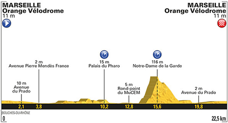 ![]() samedi 22 juillet 2017 ![]() 13h45 (Bouches-du-Rhône) : Marseille / Orange Vélodrome (km 0) - Rue Raymond Teisseire - Bd de la Pugette - Bd Gaston Ramon - Bd Michelet - Rond-point du Prado - Av. du Prado - Av. Pierre Mendès France - Rond-point Henri Frenay - Av. Pierre Mendès France - Promenade Georges Pompidou - Corniche Président John Fitzgerald Kennedy - Rue des Catalans - Bd Charles Livon - Palais du Pharo (km 10.2) - Quai de Rive Neuve - Quai des Belges - Quai du Port - Av. Vaudoyer - Rond-point du MuCEM (km 12.8) - Av. Vaudoyer - Quai du Port - Quai des Belges - Quai de Rive Neuve - Rue du Fort Notre-Dame - Bd de la Corderie - Rue du Commandant de Surian - Cours Pierre Puget - Bd André Aune - Rue des Oblats - Montée de l'Oratoire - Place du Colonel Edon - Notre-Dame de la Garde (km 15.6) - Montée de la Bonne Mère - Rue du Fort du Sanctuaire - Rue de Pointe-à-Pitre - Rue du Bois Sacré - Square Pierre Aubert - Av. des Roches - Chemin du Vallon del'Oriol - Corniche Président J.F Kennedy - Promenade Georges Pompidou - Avenue du Prado - Rond-point du Prado (km 21.6) - Bd. Michelet - Allée Marcel Leclerc - Marseille / Orange Vélodrome (km 22.5). ![]() ![]() ![]() Vidéo DailyMotion ![]() Étape : ![]() 1. Maciej Bodnar (Pol) en 28'15" (moy : 47.787 km/h) 2. Michal Kwiatkowski (Pol) à 1" 3. Christopher Froome (Gbr) à 6" 4. Tony Martin (All) à 14" 5. Daryl Impey (Afs) à 20" 6. Alberto Contador (Esp) à 21" 7. Nikias Arndt (All) à 28" 8. Rigoberto Uran (Col) à 31" 9. Stefan Küng (Sui) à 34" 10. Sylvain Chavanel (Fra) à 37" 11. Jack Bauer (Nzl) à 41" 12. Jasha Sütterlin (All) à 42" 13. Nils Politt (All) à 43" 14. Primoz Roglic (Slo) à 49" 15. Mikel Landa (Esp) à 51" 16. Tony Gallopin (Fra) à 56" 17. Taylor Phinney (Usa) à 1'06" 18. Vasil Kiryienka (Blr) à 1'07" 19. Warren Barguil (Fra) à 1'09" 20. Alexis Vuillermoz (Fra) à 1'11" 21. Damiano Caruso (Ita) à 1'13" 22. Fabio Aru (Ita) à 1'16" 23. Tiesj Benoot (Bel) à 1'21" 24. Dylan Van Baarle (Hol) à 1'22" 25. Nicolas Roche (Irl) à 1'25" 26. Imanol Erviti (Esp) à 1'26" 27. Lilian Calmejane (Fra) à 1'27" 28. Jonathan Castroviejo (Esp)" 29. Lars Ytting Bak (Dan)" 30. Carlos Betancur (Col) à 1'28" 31. Jay McCarthy (Aus) 32. Simon Yates (Gbr) à 1'34" 33. Louis Meintjes (Afs) 34. Bauke Mollema (Hol) à 1'36" 35. Alexey Lutsenko (Kaz) 36. Nairo Quintana (Col) à 1'42" 37. Thomas De Gendt (Bel) à 1'46" 38. Brice Feillu (Fra) 39. Zdenek Stybar (Tch) à 1'47" 40. Daniel Martin (Irl) à 1'52" 41. Maxime Bouet (Fra) 42. Diego Ulissi (Ita) 43. Danilo Wyss (Sui) 44. Ben Gastauer (Lux) 45. Nicolas Edet (Fra) à 1'54" 46. Albert Timmer (Hol) à 1'56" 47. Damien Howson (Aus) 48. Haimar Zubeldia (Esp) 49. Andrey Zeits (Kaz) à 1'58" 50. Romain Sicard (Fra) à 2'01" 51. Jan Bakelants (Bel) 52. Romain Bardet (Fra) à 2'03" 53. Julien Vermote (Bel) 54. Florian Vachon (Fra) à 2'07" 55. Amael Moinard (Fra) à 2'08" 56. Michael Valgren Andersen (Dan) à 2'10" 57. Andriy Grivko (Ukr) 58. Serge Pauwels (Bel) à 2'11" 59. Marco Marcato (Ita) 60. Dmitriy Gruzdev (Kaz) à 2'13" 61. Michael Schär (Sui) 62. Pierre Latour (Fra) à 2'15" 63. Elie Gesbert (Fra) à 2'16" 64. Robert Wagner (All) à 2'19" 65. Roman Kreuziger (Tch) 66. Romain Hardy (Fra) 67. Andrew Talansky (Usa) à 2'20" 68. Mikel Nieve (Esp) à 2'23" 69. Tiago Machado (Por) à 2'25" 70. Thomas Degand (Bel) 71. Axel Domont (Fra) 72. Emanuel Buchmann (All) à 2'26" 73. Marcus Burghardt (All) 74. Michael Albasini (Sui) 75. Julien Simon (Fra) à 2'27" 76. Jens Keukeleire (Bel) à 2'28" 77. Markel Irizar (Esp) 78. Michael Matthews (Aus) à 2'30" 79. Frederik Backaert (Bel) 80. Reto Hollenstein (Sui) à 2'32" 81. Pieter Vanspeybrouck (Bel) à 2'33" 82. Mike Teunissen (Hol) à 2'34" 83. Pierre Luc Périchon (Fra) 84. Gianluca Brambilla (Ita) à 2'35" 85. Paul Martens (All) à 2'36" 86. Greg Van Avermaet (Bel) 87. Alberto Bettiol (Ita) 88. Pawel Poljanski (Pol) à 2'44" 89. Ramon Sinkeldam (Hol) 90. Rudy Molard (Fra) 91. Koen De Kort (Hol) à 2'45" 92. Scott Thwaites (Gbr) à 2'46" 93. Angelo Tulik (Fra) à 2'47" 94. Cyril Lemoine (Fra) 95. Simon Geschke (All) 96. Alessandro De Marchi (Ita) à 2'50" 97. Fabio Sabatini (Ita) 98. Daniele Bennati (Ita) 99. Grega Bole (Slo) à 2'54" 100. Christophe Laporte (Fra) 101. Luke Rowe (Gbr) 102. Cyril Gautier (Fra) à 2'56" 103. Florian Senechal (Fra) à 3'00" 104. Sonny Colbrelli (Ita) 105. Guillaume Van Keirsbulck (Bel) à 3'04" 106. Daniel Navarro (Esp) à 3'05" 107. Guillaume Martin (Fra) 108. Yukiya Arashiro (Jap) 109. Laurent Pichon (Fra) à 3'07" 110. Christian Knees (All) 111. Rüdiger Selig (All) 112. Edvald Boasson Hagen (Nor) 113. Mathias Frank (Sui) à 3'08" 114. Jesus Herrada (Esp) à 3'09" 115. Eduardo Sepulveda (Arg) à 3'10" 116. Jurgen Roelandts (Bel) à 3'11" 117. Luis Angel Mate (Esp) à 3'15" 118. Marco Minnaard (Hol) 119. Rick Zabel (All) à 3'18" 120. Patrick Bevin (Nzl) à 3'20" 121. Yoann Offredo (Fra) à 3'21" 122. Simon Clarke (Aus) à 3'22" 123. Janez Brajkovic (Slo) 124. André Greipel (All) 125. Maurits Lammertink (Hol) à 3'23" 126. Michael Gogl (Aut) à 3'24" 127. Perrig Quemeneur (Fra) à 3'25" 128. Bakhtiyar Kozhatayev (Kaz) 129. Nathan Brown (Usa) 130. Olivier Le Gac (Fra) 131. Andrea Pasqualon (Ita) à 3'26" 132. Kristijan Durasek (Cro) à 3'27" 132. Sergio Henao (Col) 134. Vegard Stake Laengen (Nor) 134. Dion Smith (Nzl) 136. Stephen Cummings (Gbr) à 3'30" 137. Robert Kiserlovski (Cro) à 3'31" 138. Laurens Ten Dam (Hol) 139. Davide Cimolai (Ita) à 3'32" 140. Borut Bozic (Slo) à 3'38" 141. Thomas Voeckler (Fra) à 3'40" 142. Jaco Venter (Afs) 143. Oliver Naesen (Bel) à 3'41" 144. John Degenkolb (All) à 3'44" 145. Dylan Groenewegen (Hol) à 3'47" 146. Pierre Rolland (Fra) à 3'49" 147. Adrien Petit (Fra) 148. Reinardt Janse Van Rensburg (Afs) à 3'51" 149. Tsgabu Grmay (Eth) 150. Thomas Boudat (Fra) à 3'53" 151. Bernhard Eisel (Aut) à 3'57" 152. Adam James Hansen (Aus) à 3'58" 153. Marco 