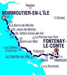 ![]() NOIRMOUTIER > FONTENAY-LE-COMTE, 195 km samedi 7 juillet 2018 ![]() 11h00 (Vendée) - D38 Noirmoutier-en-l'île (km 0) - La Guérinière (près de) (km 2.5) - Barbâtre (près de) (km 6.5) - Pont de Noirmoutier (km 14.5) - La Barre-de-Monts (près de) (km 17.5) - Notre-Dame-de-Monts (km 23) - Saint-Jean-de-Monts (km 30) - D123 Les Becs (km 40) - Les Mouettes (km 41.5) - Saint-Hilaire-de-Riez (km 47) - D38 Saint-Gilles-Croix-de-Vie (km 50.5) - Givrand (km 56.5) - La Sauzaie (km 59) - La Chalonnière (km 60.5) - Bretignolles-sur-Mer (km 62) - Les Dunes (km 65) - Brem-sur-Mer (km 65.5) - D80 Olonne-sur-Mer (km 73) - D87 L'Aubraie (km 77.5) - Les Sables-d'Olonne (km 79) - Le Château-d'Olonne (km 84) - D2949 Talmont-Saint-Hilaire (km 93.5) - D21 Jard-Sur-Mer (km 101.5) - Saint-Vincent-sur-Jard (km 104-ravitaillement) - La Raisinière (km 107) - Longeville-sur-Mer (km 92) - D105 Le Rocher (km 111) - Les Conches (km 114) - La Terrière (près de) (km 117) - D105bis La Tranche-sur-Mer (km 119.5-sprint) - D46 L'Aiguillon-sur-Mer (près de) (km 129.5) - D746 Saint-Michel-en-L'Herm (km 135) - Le Vignaud (km 140.5) - Triaize (km 142.5) - D25 Champagné-les-Marais (km 148) - Puyravault (km 152) - Sainte-Radégonde-des-Noyers (km 153.5) - D137 Chaillé-Les-Marais (km 159) - D25 Le Pas des Vaches (km 161) - Vouillé-les-Marais (km 163.5) - La Taillée (km 166) - Le Gué-de-Velluire (km 168) - Côte de Vix (km 173-GPM4) - Vix (km 174) - Le Port Vieux (km 177.5) - Le Pont de la Route (km 181) - Maillé (km 181.5) - La Croix de Maillé (km 183) - D15 La Belle Alouette (km 183.5) - Maillezais (km 187.5-bonus) - D23 Saint-Pierre-le-Vieux (km 190) - Le Peux (km 191.5) - Souil (km 192) - Puy Sec (km 195) - Fontenay-le-Comte/Bd. Duguesclin (km 201). ![]() ![]() ![]() vidéo DailyMotion ![]() Étape : ![]() 1. Fernando Gaviria (Col) en 4h23'32" 2. Peter Sagan (Slq) 3. Marcel Kittel (All) 4. Alexander Kristoff (Nor) 5. Christophe Laporte (Fra) 6. Dylan Groenewegen (Hol) 7. Michael Matthews (Aus) 8. John Degenkolb (All) 9. Jakob Fuglsang (Dan) 10. Rafal Majka (Pol) 11. Vincenzo Nibali (Ita) 12. Timothy Dupont (Bel) 13. Thomas Boudat (Fra) 14. Geraint Thomas (Gbr) 15. Bob Jungels (Lux) 16. Michael Valgren (Dan) 17. Maximiliano Richeze (Arg) 18. Philippe Gilbert (Bel) 19. Edvald Boasson Hagen (Nor) 20. Sonny Colbrelli (Ita) 21. Jasper Stuyven (Bel) 22. Andrea Pasqualon (Ita) 23. Julian Alaphilippe (Fra) 24. Greg Van Avermaet (Bel) 25. Dmitriy Gruzdev (Kaz) 26. André Greipel (All) 27. Tom Dumoulin (Hol) 28. Warren Barguil (Fra) 29. Tiesj Benoot (Bel) 30. Kristijan Koren (Slo) 31. Luis León Sanchez (Esp) 32. Mikel Landa (Esp) 33. Yves Lampaert (Bel) 34. Romain Bardet (Fra) 35. Reinardt Janse van Rensburg (Afs) 36. Mark Cavendish (Gbr) 37. Oliver Naesen (Bel) 38. Alejandro Valverde (Esp) 39. Rick Zabel (All) 40. Bauke Mollema (Hol) 41. Rudy Molard (Fra) 42. Steven Kruijswijk (Hol) 43. Ilnur Zakarin (Rus) 44. Rigoberto Uran (Col) 45. Daniel Oss (Ita) 46. Lilian Calmejane (Fra) 47. Julien Simon (Fra) 48. Anthony Turgis (Fra) 49. Dion Smith (Nzl) 50. Gorka Izaguirre (Esp) 51. Nils Politt (All) 52. Daniel Martin (Irl) 53. Laurent Pichon (Fra) 54. Primož Roglic (Slo) 55. Tejay Van Garderen (Usa) 56. Taylor Phinney (Usa) 57. Sylvain Chavanel (Fra) 58. Romain Hardy (Fra) 59. Ramon Sinkeldam (Hol) 60. Søren Kragh Andersen (Dan) 61. Marcel Sieberg (All) 62. Jens Keukeleire (Bel) 63. Edward Theuns (Bel) 64. Heinrich Haussler (All) à 22" 65. Axel Domont (Fra) à 24" 66. Toms Skujins (Let) 67. Oliviero Troia (Ita) à 32" 68. Niki Terpstra (Hol) à 33" 69. Timo Roosen (Hol) à 34" 70. Tom Scully (Nzl) 71. Pavel Kochetkov (Rus) à 40" 72. Omar Fraile (Esp) à 42" 73. Julien Vermote (Bel) 74. Magnus Cort Nielsen (Dan) 75. Florian Vachon (Fra) 76. Marcus Burghardt (All) 77. Maciej Bodnar (Pol) 78. Amael Moinard (Fra) 79. Lukas Pöstlberger (Aut) 80. Michael Gogl (Aut) 81. Simon Clarke (Aus) 82. Marco Marcato (Ita) 83. Richie Porte (Aus) à 51" 84. Adam Yates (Gbr) 85. Pierre Rolland (Fra) 86. Arthur Vichot (Fra) 87. Marco Minnaard (Hol) 88. Jon Izaguirre (Esp) 89. Antwan Tolhoek (Hol) 90. Koen De Kort (Hol) 91. Chris Froome (Gbr) 92. Julien Bernard (Fra) 93. Laurens Ten Dam (Hol) 94. Domenico Pozzovivo (Ita) 95. Rein Taaramäe (Est) 96. Robert Kiserlovski (Cro) 97. Tanel Kangert (Est) 98. Jhon Darwin Atapuma (Col) 99. Kristijan Durasek (Cro) 100. Maxime Bouet (Fra) 101. Nicolas Edet (Fra) 102. Daryl Impey (Afs) 103. Guillaume Martin (Fra) 104. Roberto Ferrari (Ita) à 1'02" 105. Serge Pauwels (Bel) à 1'04" 106. Mark Renshaw (Aus) 107. Mathias Frank (Sui) 108. Thomas Degand (Bel) à 1'12" 109. Romain Sicard (Fra) 110. Mikel Nieve (Esp) à 1'14" 111. Andrey Amador (Crc) à 1'15" 112. Nairo Quintana (Col) 113. Egan Arley Bernal (Col) 114. Daniele Bennati (Ita) à 1'17" 115. Guillaume Van Keirsbulck (Bel) à 1'18" 116. Nikias Arndt (All) 117. Paul Martens (All) 118. Amund Grondahl Jansen (Nor) 119. Jérôme Cousin (Fra) 120. Simon Geschke (All) 121. Dimitri Claeys (Bel) à 1'22" 122. Michael Schär (All) à 1'27" 123. Élie Gesbert (Fra) 124. Gregor Mühlberger (Aut) à 1'30" 125. Jacopo Guarnieri (Ita) 126. Chad Haga (Usa) 127. Gianni Moscon (Ita) à 1'38" 128. Imanol Erviti (Esp) à 1'52" 129. Tony Martin (All) à 2'00" 130. Pierre Roger Latour (Fra) à 2'11" 131. Thomas De Gendt (Bel) à 2'16" 132. Alexis Vuillermoz (Fra) 133. Daniel Felipe Martinez (Esp) à 2'19" 134. Sep Vanmarcke (Bel) 135. Tom-Jelte Slagter (Hol) à 2'24" 136. Fabien Grellier (Fra) 137. Tim Declercq (Bel) 138. Tsgabu Gebremaryam Grmay (Eth) à 2'24" 139. David Gaudu (Fra) 140. Marc Soler (Esp) 141. Jesus Herrada (Esp) 142. Damien Gaudin (Fra) 143. Stefan Küng (Sui) 144. Franco Pellizotti (Ita) 145. Pawel Poljanski (Pol) 146. Anthony Perez (Fra) 147. Rory Sutherland (Aus) 148. Michal Kwiatkowski (Pol) 149. Daniel Navarro (Esp) 150. Luke Rowe (Gbr) 151. Patrick Bevin (Nzl) à 2'42" 152. Wout Poels (Hol) à 2'44" 153. Ian Boswell (Usa) 154. Jose Rojas (