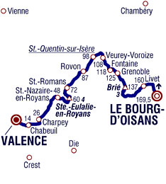![]() vendredi 20 juillet 2018 ![]() 13h45 (Isère) : Bourg d'Oisans (km 0) - Les Sables (km 1) - Rochetaillée (km 3.5) - Livet (près de) (km 9.5) - Rioupéroux (km 12.5) - Gavet (km 16) - Séchilienne (près de) (km 20.5) - Le Péage de Vizille (km 25.5) - Vizille (km 29.5) - D5 Côte de Brié (km 32.5-GPM3) - Brié (km 34) - Tavernolles (km 36.5) - Eybens (km 39) - Grenoble (km 42.5) - D531 Sassenage (km 50.5) - Fontaine (km 51) - Sassenage (km 52) - D1532 Noyarey (km 57) - Veurey-Voroize (près de) (km 61.5) - L'Échaillon (km 65.5) - Saint-Quentin-sur-Isère (km 71) - Saint-Gervais-Le Port (près de) (km 81.5) - Cognin-les-Gorges (km 88) - Chagneux (près de) (km 91.5) - Izeron (km 92) - L'Île (km 94) - Saint-Romans (km 97) - D518 Malot (km 100) - Birollet (km 104) - Pont-en-Royans (km 106) - (Drôme) : Les Gots (km 108.5) - Sainte-Eulalie-en-Royans (km 109) - Côte de Sainte-Eulalie-en-Royans (km 109.5) - D54 Saint-Laurent-en-Royans (km 111.5) - D76 Saint-Thomas-en-Royans (km 116) - La Motte-Fanjas (près de) (km 119) - Saint-Nazaire-en-Royans (km 121) - Hostun (km 127) - Rochefort-Samson (km 136.5) - Barbières (près de) (km 139) - Charpey (km 143) - D102 Peyrus (km 147) - D68 Les Faucons (km 151) - Les Bourbourées (km 152.5) - D538 Chabeuil (près de) (km 155.5) - D68 Pierres Blanches (km 157.5) - Culières (km 158) - Valence/Av. de Romans (km 169.5). ![]() ![]() ![]() vidéo DailyMotion ![]() Étape : ![]() 1. Peter Sagan (Slq) en 3h45'55" 2. Alexander Kristoff (Nor) 3. Arnaud Demare (Fra) 4. John Degenkolb (All) 5. Greg Van Avermaet (Bel) 6. Yves Lampaert (Bel) 7. Magnus Cort Nielsen (Dan) 8. Andrea Pasqualon (Ita) 9. Sonny Colbrelli (Ita) 10. Taylor Phinney (Usa) 11. Reinardt Janse Van Rensburg (Afs) 12. Dion Smith (Nzl) 13. Jacopo Guarnieri (Ita) 14. Timothy Dupont (Bel) 15. Pierre Latour (Fra) 16. Nikias Arndt (All) 17. Edvald Boasson Hagen (Nor) 18. Jasper De Buyst (Bel) 19. Christophe Laporte (Fra) 20. Michael Hepburn (Aus) 21. Thomas Boudat (Fra) 22. Romain Bardet (Fra) 23. Kevin Ledanois (Fra) 24. Mikel Landa (Esp) 25. Geraint Thomas (Gbr) 26. Timo Roosen (Hol) 27. Nairo Quintana (Col) 28. Maximiliano Richeze (Arg) 29. Daniel Martin (Irl) 30. Steven Kruijswijk (Hol) 31. Bob Jungels (Lux) 32. Lilian Calmejane (Fra) 33. Jasper Stuyven (Bel) 34. Nils Politt (All) 35. Tanel Kangert (Est) 36. Julien Vermote (Bel) 37. Tom Dumoulin (Hol) 38. Philippe Gilbert (Bel) 39. Chris Froome (Gbr) 40. Mikel Nieve (Esp) 41. Jack Bauer (Nzl) 42. Sylvain Chavanel (Fra) 43. Stefan Küng (Sui) 44. Michael Valgren (Dan) 45. Primoz Roglic (Slo) 46. Ilnur Zakarin (Rus) 47. Alejandro Valverde (Esp) 48. Marco Minnaard (Hol) 49. Jakob Fuglsang (Dan) 50. Mathew Hayman (Aus) 51. Guillaume Martin (Fra) 52. Warren Barguil (Fra) 53. Arthur Vichot (Fra) 54. Gorka Izagirre (Esp) 55. Edward Theuns (Bel) 56. Sep Vanmarcke (Bel) à 14" 57. Ramon Sinkeldam (Hol) à 24" 58. Julien Simon (Fra) à 29" 59. Yoann Offredo (Fra) 60. Pavel Kochetkov (Rus) à 33" 61. Guillaume Van Keirsbulck (Bel) 62. Daniele Bennati (Ita) à 40" 63. Maxime Bouet (Fra) 64. Imanol Erviti (Esp) 65. Paul Martens (All) à 43" 66. Heinrich Haussler (Aus) 67. Silvan Dillier (Sui) 68. Marco Marcato (Ita) à 47" 69. Roberto Ferrari (Ita) 70. Laurent Pichon (Fra) 71. Koen de Kort (Hol) à 52" 72. Simon Gerrans (Aus) à 59" 73. Kristijan Koren (Slo) à 1'05" 74. Oliver Naesen (Bel) à 1'07" 75. Ion Izagirre (Esp) 76. Jesper Hansen (Dan) 77. Amael Moinard (Fra) 78. Jerome Cousin (Fra) à 1'14" 79. Domenico Pozzovivo (Ita) à 1'23" 80. Bauke Mollema (Hol) 81. Adam Yates (Gbr) 82. Thomas Degand (Bel) 83. Kristijan Durasek (Cro) 84. Maciej Bodnar (Pol) 85. Pierre Rolland (Fra) 86. Rudy Molard (Fra) 87. Simon Geschke (All) 88. Laurens Ten Dam (Hol) 89. Andrey Amador (Crc) 90. Tejay Van Garderen (Usa) 91. Robert Gesink (Hol) à 1'36" 92. Jay Thomson (Afs) 93. Patrick Bevin (Nzl) 94. Julien Bernard (Fra) 95. Jesus Herrada (Esp) 96. Tomasz Marczynski (Pol) 97. Amund Grøndahl Jansen (Nor) 98. Florian Vachon (Fra) 99. Romain Sicard (Fra) à 1'50" 100. Fabien Grellier (Fra) à 1'51" 101. Søren Kragh Andersen (Dan) à 1'56" 102. Marcus Burghardt (All) 103. Simon Clarke (Aus) 104. Daniel Oss (Ita) 105. Jonathan Castroviejo (Esp) 106. Tobias Ludvigsson (Sue) à 2'02" 107. David Gaudu (Fra) 108. Nicolas Edet (Fra) 109. Damiano Caruso (Ita) 110. Franco Pellizotti (Ita) 111. Oliviero Troia (Ita) 112. Olivier Le Gac (Fra) 113. Chad Haga (Usa) 114. Lukas Pöstlberger (Aut) à 2'08" 115. Gregor Mühlberger (Aut) 116. Mathias Frank (Sui) 117. Rafal Majka (Pol) 118. Thomas De Gendt (Bel) 119. Jelle Vanendert (Bel) 120. Rory Sutherland (Aus) 121. Anthony Turgis (Fra) 122. Tim Declercq (Bel) 123. Pawel Poljanski (Pol) 124. Ian Boswell (Usa) 125. Egan Bernal (Col) 126. Omar Fraile (Esp) 127. Michal Kwiatkowski (Pol) 128. Daniel Navarro (Esp) 129. Gianni Moscon (Ita) 130. Luke Rowe (Gbr) 131. Antwan Tolhoek (Hol) 132. Anthony Perez (Fra) 133. Marc Soler (Esp) 134. Serge Pauwels (Bel) 135. Damien Howson (Aus) 136. Daniel Martinez (Col) 137. Darwin Atapuma (Col) 138. Luke Durbridge (Aus) 139. Daryl Impey (Afs) 140. Wout Poels (Hol) 141. Tom-Jelte Slagter (Hol) 142. Elie Gesbert (Fra) 143. Romain Hardy (Fra) 144. Dimitri Claeys (Bel) 145. Niki Terpstra (Hol) 146. Toms Skujins (Lat) 147. Damien Gaudin (Fra) 148. Julian Alaphilippe (Fra) 149. Tom Scully (Nzl) à 2'45" 150. Lawson Craddock (Usa) 151. Michael Schär (Sui) à 2'48" 152. Michael Gogl (Aut) à 3'16" Non-partant : Vincenzo Nibali (Ita) Prix de la combativité : Michael Schär (Sui) Classement général : ![]() 1. Geraint Thomas (Gbr) en 53h10'38" 2. Chris Froome (Gbr) à 1'39" 3. Tom Dumoulin (Hol) à 1'50" 4. Primoz Roglic (Slo) à 2'46" 5. Romain Bardet (Fra) à 3'07" 6. Mikel Landa (Esp) à 3'13" 7. Steven Kruijswijk (Hol) à 3'43" 8. Nairo Quintana (Col) à 4'13" 9. Daniel Martin (Irl) à 5'11" 10. Jakob Fuglsang (Dan) à 5'45" 11. Alejandro Valverde (Esp) à 9'07" 12. Bob Jungels (Lux) à 9'09" 13. Ilnur