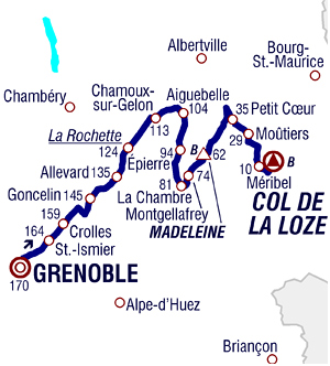 ![]() mercredi 16 septembre 2020 ![]() 12h30 (Isère) Grenoble - Corenc/Av. de l'Eygala (km 0) - Meylan (km 0.5) - Montbonnot Saint-Martin (km 3) - D1090 Saint-Ismier (km 5.5) - Saint-Nazaire-les-Eymes (km 8) - Bernin (km 9.5) - Crolles (km 11) - Mont fort (km 14) - Lumbin (km 15) - Le Carré (km 17) - D30 Tencin (km 21) - D523 Goncelin (km 24.5) - D25 Les Fontaines (km 28) - Morêtel-de-Maille (km 30) - Saint-Pierre d'Allevard (km 31.5) - Allevard-les-Bains (km 34.5) - (Savoie) : Détrier (km 42.5) - D925 La Rochette (km 45.5-sprint) - La Croix-de-la-Rochette (km 46) - Les Barraques (km 49.5) - D30 Chamoux-sur-Gelon (km 56.5) - D27 La Grande-Croix d'Aiguebelle (km 61.5) - D925 D73 Barouchat (km 63) - D1006 Aiguebelle (km 65.5) - Argnetine (près de) (km 70) - Épierre (près de) (km 76) - D76A La Chambre (km 88.5) - Notre-Dame-du-Cruet (km 89.5) - Le Replat (km 101) - Col de La Madeleine (km 107.5-GPM.HC) - Celliers (km 116.5) - La Thuile (km 119) - D213 Bonneval-Tarentaise (km 124.5) - D97 Notre-Dame de Briançon (km 132.5) - D990 Petit-Coeur (km 135) - Aigueblanche (km 138.5) - Moûtiers (km 141) - D915 Brides-les-Bains (km 147) - D90 Nantgerel (km 157.5) - Méribel (km 160) - Col de la Loze (km 170-GPM.HC-Souv. H.D). ![]() ![]() ![]() Vidéo Tour de France/DailyMotion ![]() Étape : ![]() 1. Miguel Angel Lopez (Col) en 4h49'08" (moy: 35.278 km/h) 2. Primoz Roglic (Slo) à 15" 3. Tadej Pogacar (Slo) à 30" 4. Sepp Kuss (Usa) à 56" 5. Richie Porte (Aus) à 1'01" 6. Enric Mas (Esp) à 1'12" 7. Mikel Landa (Esp) à 1'20" 8. Adam Yates (Gbr) à 1'20" 9. Rigoberto Uran (Col) à 1'59" 10. Tom Dumoulin (Hol) à 2'13" 11. Richard Carapaz (Equ) à 2'41" 12. Alejandro Valverde (Esp) à 2'48" 13. Damiano Caruso (Ita) à 3'30" 14. Guillaume Martin (Fra) à 3'59" 15. Valentin Madouas (Fra) à 4'09" 16. Kenny Elissonde (Fra) à 6'12" 17. Carlos Verona (Esp) à 6'53" 18. David De la Cruz (Esp) à 7'15" 19. Wout Van Aert (Bel) 20. Warren Barguil (Fra) 21. Gorka Izagirre (Esp) à 8'19" 22. Pello Bilbao (Esp) à 9'10" 23. Hugh Carthy (Gbr) à 9'49" 24. Benoît Cosnefroy (Fra) à 12'14" 25. Robert Gesink (Hol) à 15'33" 26. Julian Alaphilippe (Fra) à 18'05" 27. George Bennett (Nzl) à 18'26" 28. Jan Polanc (Slo) à 18'40" 29. Michael Gogl (Aut) à 19'00" 30. Omar Fraile (Esp) à 19'08" 31. Daniel Martin (Irl) à 20'05" 32. Wout Poels (Hol) à 20'36" 33. Alexis Vuillermoz (Fra) à 21'28" 34. Thibaut Pinot (Fra) 35. Sébastien Reichenbach (Sui) 36. Mikael Chérel (Fra) à 37. Lennard Kämna (All) à 21'47" 38. Rudy Molard (Fra) à 21'51" 39. Matej Mohoric (Slo) à 22'04" 40. Thomas De Gendt (Bel) à 22'26" 41. Romain Sicard (Fra) à 22'29" 42. Niklas Eg (Dan) à 23'10" 43. Emanuel Buchmann (All) à 23'33" 44. Nelson Oliveira (Por) à 24'08" 45. Dayer Quintana (Col) à 25'17" 46. Nairo Quintana (Col) 47. Quentin Pacher (Fra) 48. Pavel Sivakov (Rus) 49. Cyril Barthe (Fra) 50. Oliver Naesen (Bel) 51. Tiesj Benoot (Bel) 52. Ben Hermans (Bel) 53. Ryan Gibbons (Afs) 54. Joris Nieuwenhuis (Hol) 55. Hugo Houle (Can) 56. Michael Schär (Sui) 57. Alexey Lutsenko (Kaz) 58. Dylan Van Baarle (Hol) 59. Matthieu Ladagnous (Fra) 60. Marc Soler (Esp) 61. Pierre Rolland (Fra) 62. Imanol Erviti (Esp) 63. Cyril Gautier (Fra) 64. Maxime Chevalier (Fra) 65. Daniel Felipe Martinez (Col) à 25'26" 66. Esteban Chaves (Col) 67. Nans Peters (Fra) 68. Vegard Stake Laengen (Nor) 69. Winner Anacona (Col) à 25'40" 70. Kevin Ledanois (Fra) à 25'48" 71. Connor Swift (Gbr) 72. Krists Neilands (Let) à 25'52" 73. Maximilian Schachmann (All) 74. Daryl Impey (Afs) 75. Neilson Powless (Usa) 76. José Rojas (Esp) à 25'59" 77. Nicolas Édet (Fra) 78. Greg Van Avermaet (Bel) à 26'01" 79. Sonny Colbrelli (Ita) à 26'06" 80. Tony Martin (All) 81. Jens Keukeleire (Bel) à 26'08" 82. Tejay Van Garderen (Usa) 83. Christopher Juul Jensen (Dan) 84. Jesus Herrada (Esp) 85. Simon Geschke (All) à 26'32" 86. Geoffrey Soupe (Fra) à 26'37" 87. Daniel Oss (Ita) à 26'42" 88. Clément Venturini (Fra) à 26'46" 89. Edvald Boasson Hagen (Nor) à 27'25" 90. Søren Kragh Andersen (Dan) 91. Lukas Pöstlberger (Aut) à 27'30" 92. Anthony Turgis (Fra) à 27'32" 93. Clément Russo (Fra) à 27'40" 94. Harold Alfonso Tejada (Col) à 28'17" 95. Luis León Sanchez (Esp) 96. Tom Van Asbroeck (Bel) 97. Hugo Hofstetter (Fra) à 28'23" 98. Rémi Cavagna (Fra) 99. Michael Valgren (Dan) à 28'25" 100. Mads Pedersen (Dan) 101. Nicolas Roche (Irl) à 28'27" 102. Mathieu Burgaudeau (Fra) à 28'29" 103. Jasper Stuyven (Bel) à 28'30" 104. Jack Bauer (Nzl) 105. Bob Jungels (Lux) à 28'32" 106. Felix Großschartner (Aut) à 28'38" 107. Jan Hirt (Tch) 108. Marc Hirschi (Sui) à 28'41" 109. Alberto Bettiol (Ita) à 28'44" 110. Dario Cataldo (Ita) à 28'45" 111. Toms Skujins (Let) à 29'05" 112. Edward Theuns (Bel) 113. Kasper Asgreen (Dan) à 29'09" 114. Jonas Koch (All) à 29'12" 115. Peter Sagan (Slq) à 29'16" 116. Jonathan Castroviejo (Esp) 117. Andrey Amador (Crc) 118. Pierre Luc Périchon (Fra) à 29'20" 119. Fabien Grellier (Fra) à 29'22" 120. Nils Politt (All) à 29'24" 121. Luka Mezgec (Slo) à 29'26" 122. Nikias Arndt (All) 123. Casper Phillip Pedersen (Dan) 124. Alessandro De Marchi (Ita) à 29'29" 125. Dries Devenyns (Bel) à 29'37" 126. Jasper De Buyst (Bel) à 29'40" 127. Amund Grøndahl Jansen (Nor) à 29'44" 128. Guy Niv (Isr) à 29'47" 129. Christophe Laporte (Fra) à 29'49" 130. Michal Kwiatkowski (Pol) à 30'09 131. Luke Rowe (Gbr) 132. Michael Mørkøv (Dan) à 30'22" 133. Tim Declercq (Bel) 134. Sam Bennett (Irl) 135. Niccolò Bonifazio (Ita) 136. Elia Viviani (Ita) à 30'32" 137. Simone Consonni (Ita) 138. Marco Marcato (Ita) 139. Maximilian Walscheid (All) à 30'56" 140. Alexander Kristoff (Nor) à 31'04" 141. Caleb Ewan (Aus) à 31'13" 142. Roger Kluge (All) 143. Matteo Trentin (Ita) à 31'49" 144. Frederik Frison (Bel) à 32'09" 145. Cees Bol (Hol) 146. Roman Kreuziger (Tch) à 32'23" 147. Marco Haller (Aut) à 32'32" 148. André Greipel (All) à 32'45