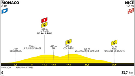 ![]() dimanche 21 juillet 2024 ![]() 14h40 à 18h45 (MONACO) : Monaco (km 0) - (FRANCE) - (Alpes-Maritimes) : Beausoleil (km 3.9) - D53 La Turbie (km 11.2-chrono) - M45 Èze (km 13.4) - Col d'Èze (km 17.1-chrono) - Èze (km 17.6) - M2564 Villefranche-sur-Mer (km 21.6) - Villefranche-sur-Mer / Corne d'Or (km 24.5) - Nice (km 25.9) - Nice / Pl. de l'Île de Beauté (km 28.6-chrono) - Nice / Pl. Masséna (km 33.7). ![]() ![]() ![]() Vidéo Tour de France / DailyMotion ![]() Étape : ![]() 1. Tadej Pogacar (Slo) en 45'25" (moy : 44.52 km/h) 2. Jonas Vingegaard (Dan) à 1'03" 3. Remco Evenepoel (Bel) à 1'14" 4. Matteo Jorgenson (Usa) à 2'08" 5. João Almeida (Por) à 2'18" 6. Derek Gee (Can) à 2'31" 7. Mikel Landa (Esp) à 2'41" 8. Harold Tejada (Col) à 2'50" 9. Santiago Buitrago (Col) à 2'53" 10. Adam Yates (Gbr) à 2'56" 11. Lenny Martinez (Fra) à 3'00" 12. Simon Yates (Gbr) à 3'10" 13. Victor Campenaerts (Bel) à 3'14" 14. Quentin Pacher (Fra) à 3'34" 15. Romain Grégoire (Fra) 16. Neilson Powless (Usa) à 3'45" 17. Carlos Rodriguez (Esp) à 3'52" 18. Ilan Van Wilder (Bel) à 3'54" 19. Matteo Sobrero (Ita) à 3'55" 20. Kévin Vauquelin (Fra) à 3'58" 21. Jakob Fuglsang (Dan) 22. Michael Matthews (Aus) à 4'00" 23. Bruno Armirail (Fra) 24. Jan Tratnik (Slo) à 4'07" 25. Enric Mas (Esp) à 4'16" 26. Laurens De Plus (Bel) à 4'17" 27. Guillaume Martin (Fra) à 4'19" 28. Raul Garcia Pierna (Esp) à 4'33" 29. Jasper Stuyven (Bel) à 4'35" 30. Mathieu Burgaudeau (Fra) 31. Oscar Onley (Gbr) à 4'41" 32. Jordan Jegat (Fra) 33. Thomas Gachignard (Fra) à 4'44" 34. Jai Hindley (Aus) à 4'50" 35. Bob Jungels (Lux) à 4'53" 36. Julio Ciccone (Ita) à 4'54" 37. Romain Bardet (Fra) à 4'57" 38. Steff Cras (Bel) à 4'58" 39. Valentin Madouas (Fra) à 5'00" 40. Jack Haig (Aus) à 5'01" 41. Tim Wellens (Bel) à 5'06" 42. Mathieu Van der Poel (Hol) à 5'11" 43. Kobe Goossens (Bel) à 5'17" 44. Bart Lemmen (Hol) à 5'20" 45. Mattéo Vercher (Fra) à 5'22" 46. Louis Meintjes (Afs) à 5'26" 47. Clément Russo (Fra) à 5'30" 48. Nicolas Prodhomme (Fra) à 5'32" 49. Julien Bernard (Fra) à 5'35" 50. Hugo Houle (Can) à 5'40" 51. Luke Durbridge (Aus) à 5'47" 52. Dorian Godon (Fra) 53. Krists Neilands (Let) à 5'48" 54. Clément Champoussin (Fra) à 5'51" 55. Geraint Thomas (Gbr) à 5'53" 56. David Gaudu (Fra) à 5'55" 57. Matej Mohoric (Slo) à 5'59" 58. Christopher Juul-Jensen (Dan) à 6'04" 59. Warren Barguil (Fra) à 6'08" 60. Frank Van den Broek (Hol) à 6'10" 61. Axel Laurance (Fra) 62. Simon Geschke (All) à 6'11" 63. Oier Lazcano (Esp) à 6'15" 64. Nans Peters (Fra) 65. Nelson Oliveira (Por) à 6'17" 66. Davide Formolo (Ita) à 6'18" 67. Egan Bernal (Col) à 6'19" 68. Gregor Mühlberger (Aut) à 6'20" 69. Sébastien Grignard (Fra) 70. Nils Politt (All) à 6'22" 71. Sean Quinn (Usa) à 6'23" 72. Axel Zingle (Fra) à 6'26" 73. Fabien Grellier (Fra) à 6'28" 74. Ryan Gibbons (Afs) à 6'34" 75. Harm Vanhoucke (Bel) à 6'40" 76. Johannes Kulset (Nor) à 6'44" 77. Cristian Rodriguez (Esp) à 6'46" 78. Wilco Keldermann (Hol) à 6'49" 79. Tobias Halland Johannessen (Nor) 80. Cedric Beullens (Bel) à 6'50" 81. Hugo Page (Can) à 6'53" 82. Pavel Sivakov (Fra) à 6'54" 83. Javier Romo (Esp) 84. Stefan Bisseger (Sui) à 6'58" 85. Carlos Verona (Esp) 86. Cees Bol (Hol) à 7'00" 87. Rasmus Tiller (Nor) à 7'01" 88. Brent Van Moer (Bel) à 7'02" 89. Christophe Laporte (Fra) à 7'05" 90. Marijn Van den Berg (Hol) 91. Kevin Geniets (Lux) 92. Bryan Coquard (Fra) à 7'06" 93. Jonas Abrahamsen (Nor) 94. Georg Zimmermann (All) à 7'07" 95. Laurenz Rex (Bel) à 7'09" 96. Magnus Cort Nielsen (Dan) 97. Wout Poels (Hol) à 7'15" 98. Odd Christian Eiking (Nor) à 7'18" 99. Danny Van Poppel (Hol) à 7'20" 100. Jarrad Drizners (Aus) à 7'25" 101. Gianni Vermeersch (Bel) à 7'29" 102. Rui Costa (Por) à 7'30" 103. Felix Gall (Aut) à 7'31" 104. Jasper Philipsen (Bel) 105. Jonathan Castroviejo (Esp) à 7'34" 106. Paul Lapeira (Fra) à 7'37" 107. Tiesj Benoot (Bel) à 7'38" 108. Anthony Turgis (Fra) 109. Silvan Dillier (Sui) à 7'39" 110. Ben Healy (Irl) à 7'43" 111. Jan Hirt (Tch) 112. Ben Turner (Gbr) 113. Davide Ballerini (Ita) à 7'46" 114. Robbe Ghys (Bel) à 7'47" 115. Nico Denz (All) à 7'49" 116. Alex Aranburu (Esp) à 8'02" 117. Arnaud De Lie (Bel) à 8'11" 118. Luca Mezgec (Slo) à 8'12" 119. Gianni Moscon (Ita) 120. Wout Van Aert (Bel) à 8'14" 121. Mike Teunissen (Hol) à 8'18" 122. Richard Carapaz (Equ) à 8'24" 123. John Degenkolb (All) à 8'25" 124. Yves Lampaert (Bel) 125. Toms Skujins (Let) à 8'34" 126. Luca Mozzato (Ita) à 8'35" 127. Alexander Kristoff (Nor) à 8'41" 128. Michal Kwiatkowski (Pol) 129. Daniel McLay (Gbr) à 8'45" 130. Pascal Ackermann (All) à 8'49" 131. Marco Haller (Aut) à 8'51" 132. Piet Allegaert (Bel) à 8'57" 133. Oliver Naesen (Bel) 134. Mark Cavendish (Gbr) à 9'14" 135. Biniam Girmay (Ery) à 9'23" 136. Stephen Williams (Gbr) à 9'35" 137. Sandy Dujardin (Fra) à 9'36" 138. Soren Wærenskjold (Nor) à 9'40" 139. Nikias Arndt (All) 140. Marc Soler (Esp) à 9'46" 141. Dylan Groenewegen (Hol) à 10'41" Classement par points : Étape : 1. Tadej Pogacar (Slo) 20 pts 2. Jonas Vingegaard (Dan) 17 3. Remco Evenepoel (Bel) 15 4. Matteo Jorgenson (Usa) 13 5. João Almeida (Por) 11 6. Derek Gee (Can) 10 7. Mikel Landa (Esp) 9 8. Harold Tejada (Col) 8 9. Santiago Buitrago (Col) 7 10. Adam Yates (Gbr) 6 11. Lenny Martinez (Fra) 5 12. Simon Yates (Gbr) 4 13. Victor Campenaerts (Bel) 3 14. Quentin Pacher (Fra) 2 15. Romain Grégoire (Fra) 1 Classement de la montagne : km 11.2 - La Turbie (cat.2-480 m) 1. Tadej Pogacar (Slo) 5 pts 2. Jonas Vingegaard (Dan) 3 3. Remco Evenepoel (Bel) 2 4. Derek Gee (Can) 1 Classement par équipes : 1. UAE TEAM EMIRATES en 2h21'26" 2. TEAM VISMA | LEASE A BIKE à 2'04" 3. SOUDAL QUICK-STEP à 2'35" 4. GROUPAMA - FDJ à 4'54" 5. ISRAEL - PREMIER TECH à 6'55" 6. TEAM JAYCO ALULA à 7'43" 7. RED BULL - BORA - HANSGROHE à 8'24" 8. BAHRAIN - VICTORIOUS à 8'39" ... |
